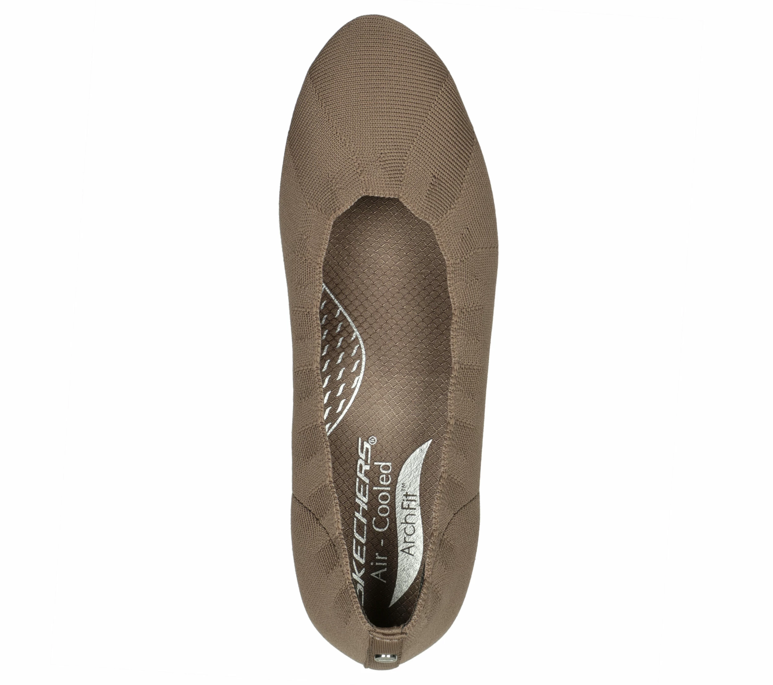 Versatile eco-friendly style and supportive comfort combine in Skechers Arch Fit® Cleo. This skimmer flat features a breathable Stretch Fit® engineered knit upper with a scalloped trim and a cushioned Skechers Air-Cooled Memory Foam® insole. Our Planet Matters: Good for your feet. Good for the world.