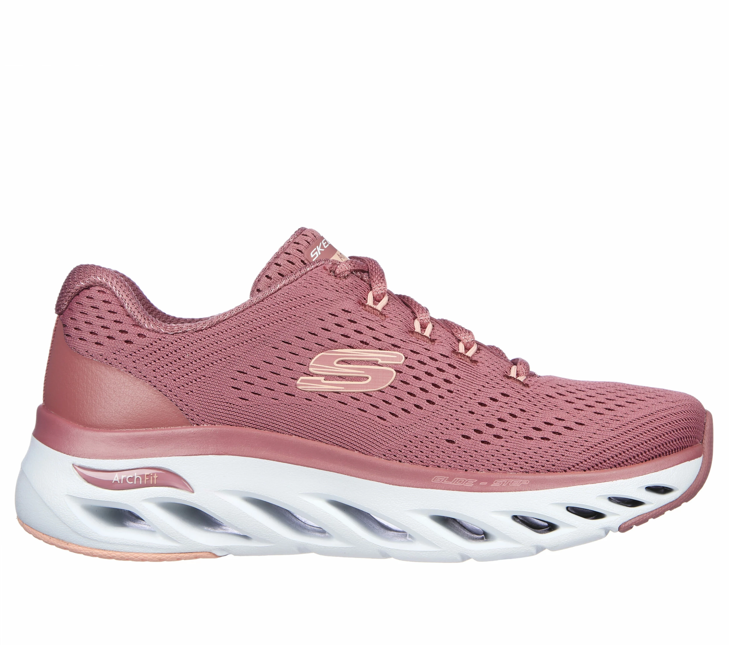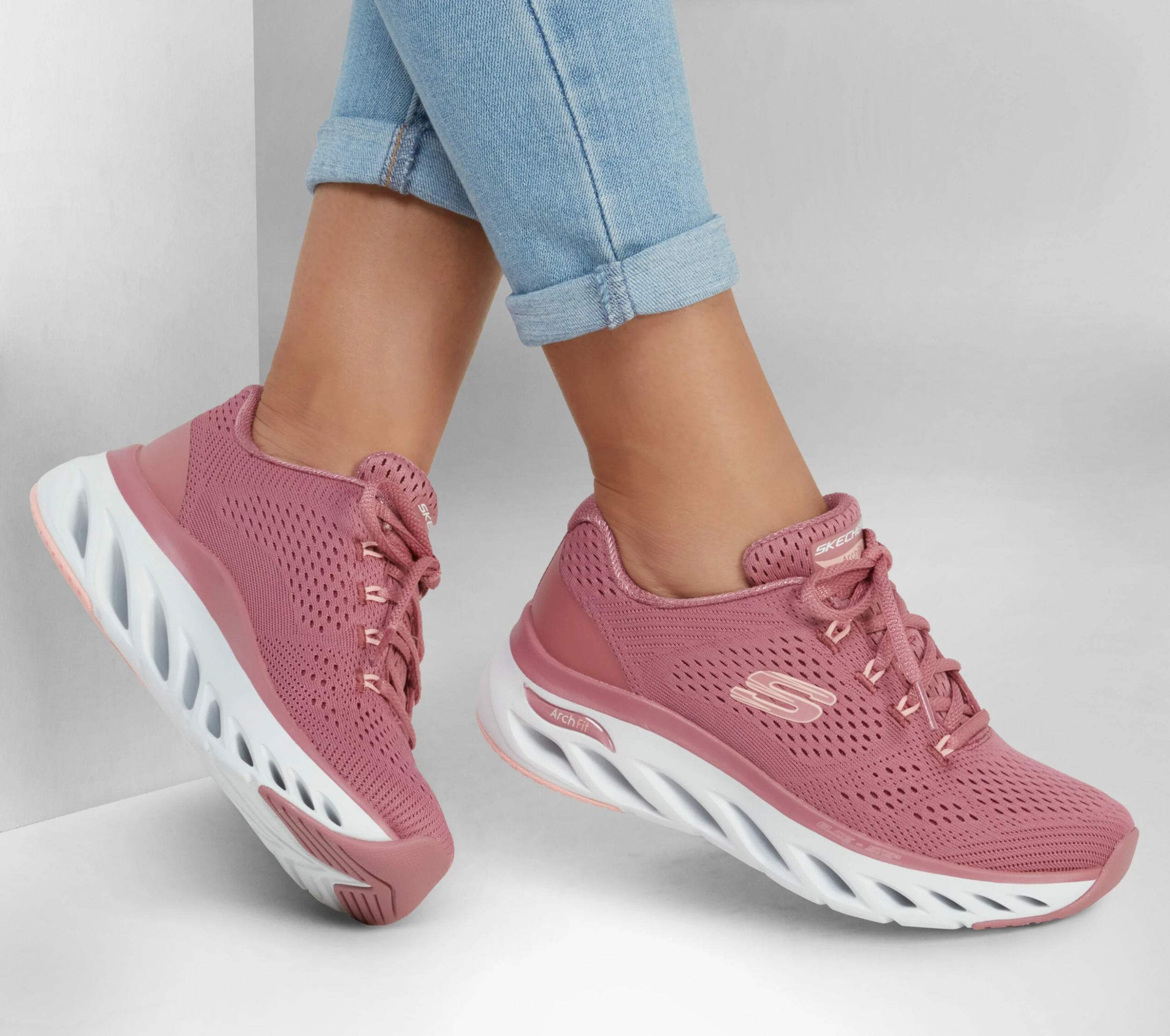 Elevate your steps in surefooted supportive comfort with Skechers Arch Fit® Glide-Step® – Top Glory. This lace-up features an engineered mesh and synthetic upper with a removable Arch Fit® insole, a lightweight Glide-Step® geometric cushioned midsole, plus a Goodyear® Rubber outsole.