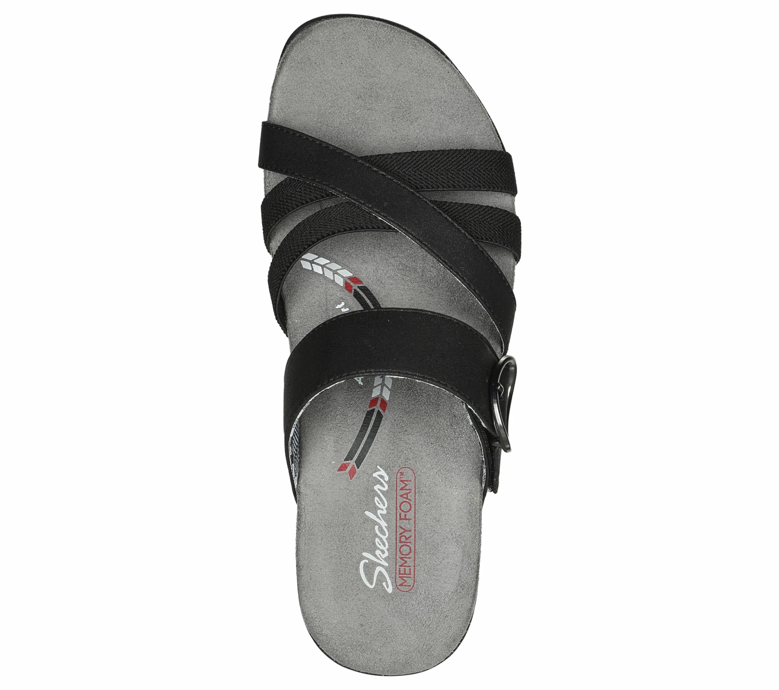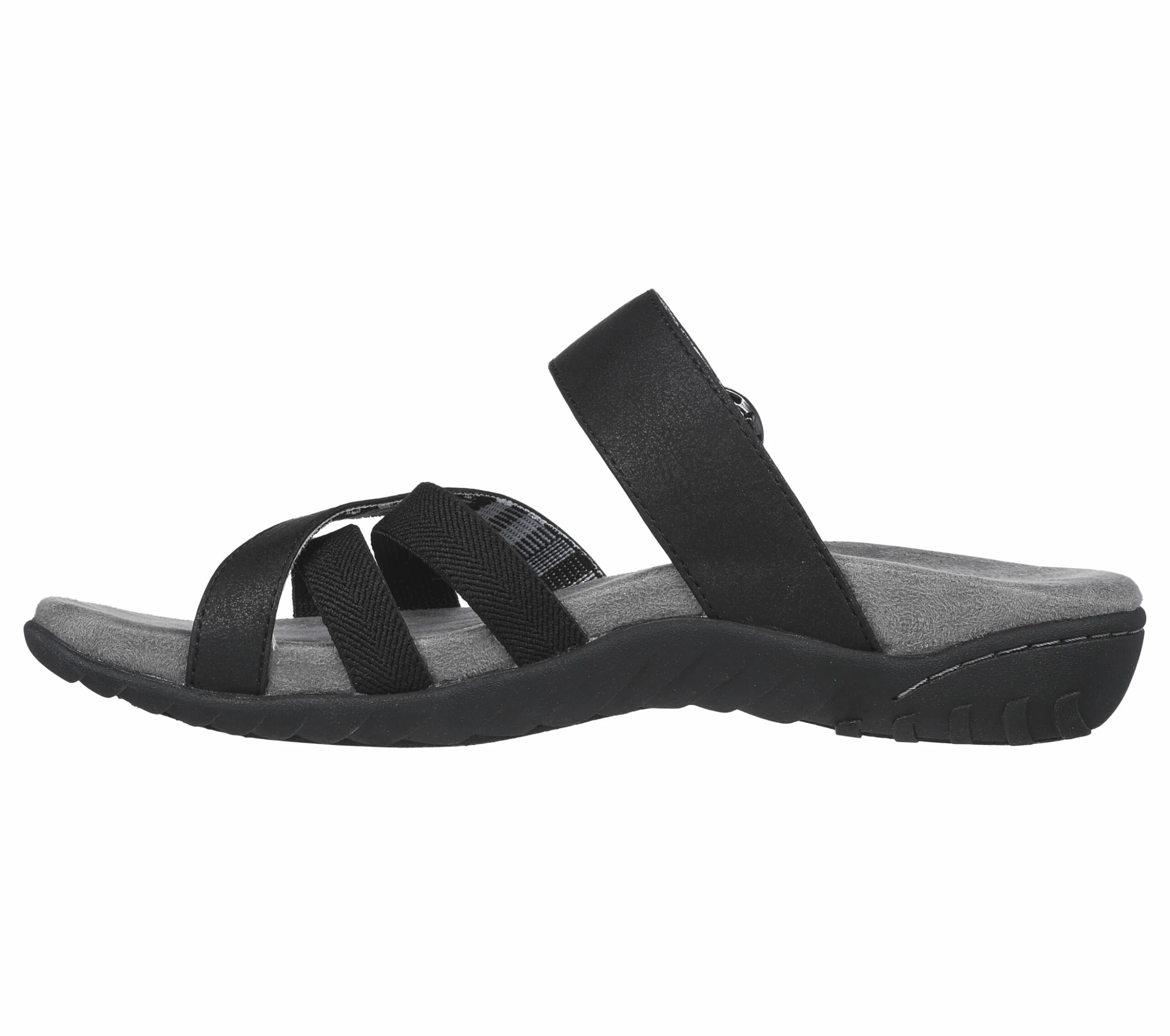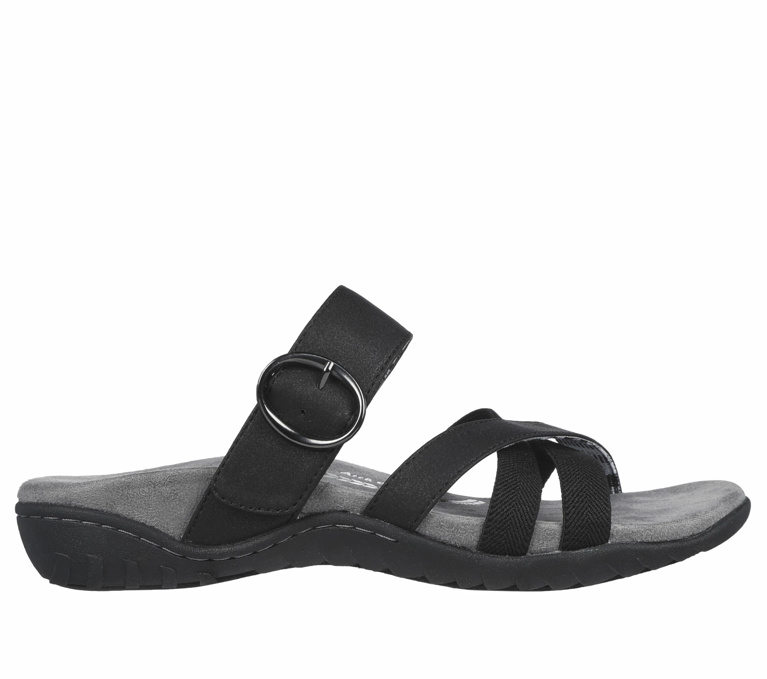 Take it easy in warm weather style and support wearing Skechers Arch FitĀ® Reggae Trek – Summer Fling. This strappy vegan sandal features a faux leather and woven textile upper with a metallic buckle closure and an Arch FitĀ® contoured footbed.