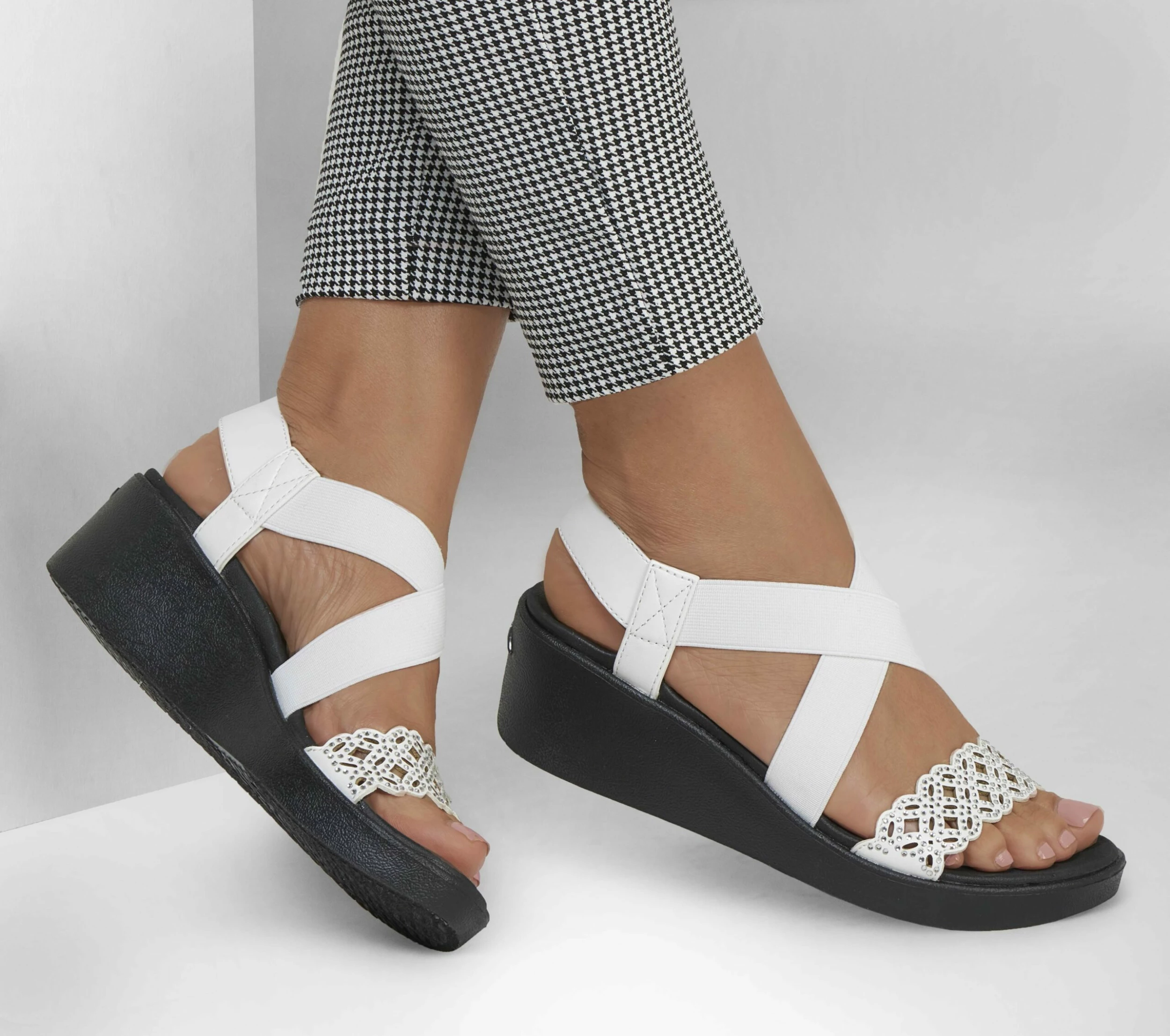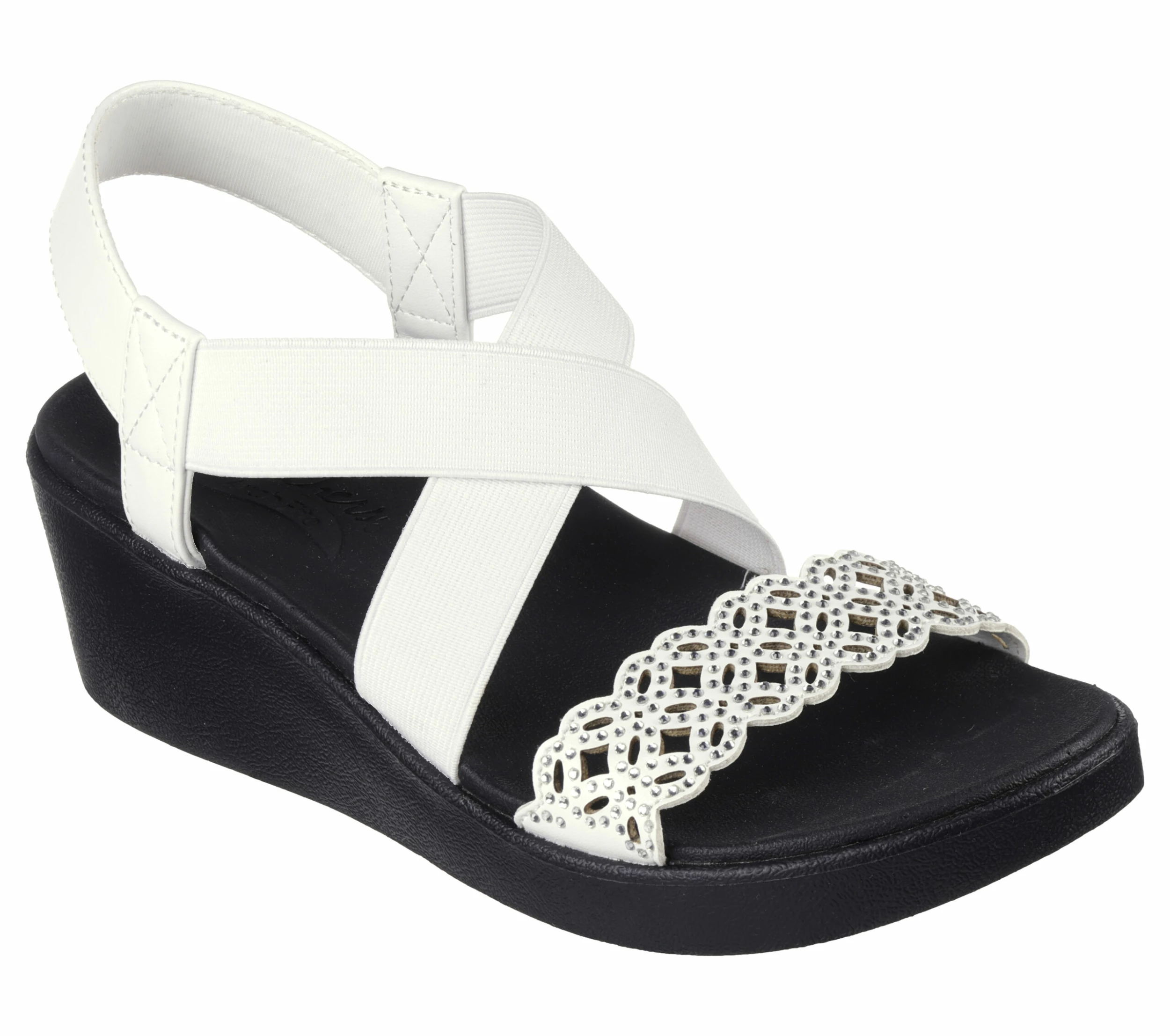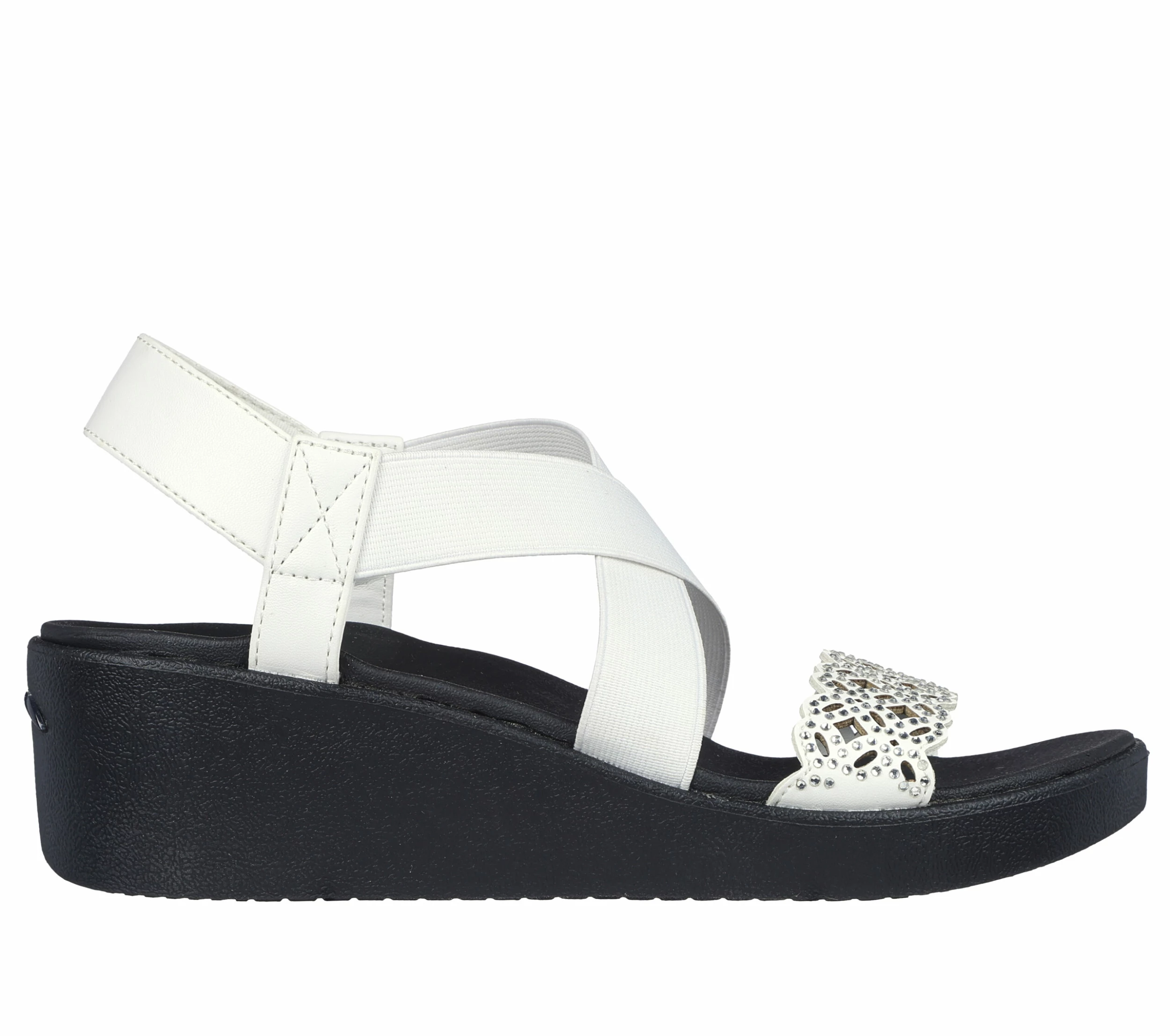 Sunny-weather style and long-lasting comfort combine in Skechers CaliĀ® Arch FitĀ® Rumble – Dance Party. This sling-back wedge sandal features an embellished synthetic floral laser cut upper with a strappy stretch fabric instep and a supportive Arch FitĀ® footbed.