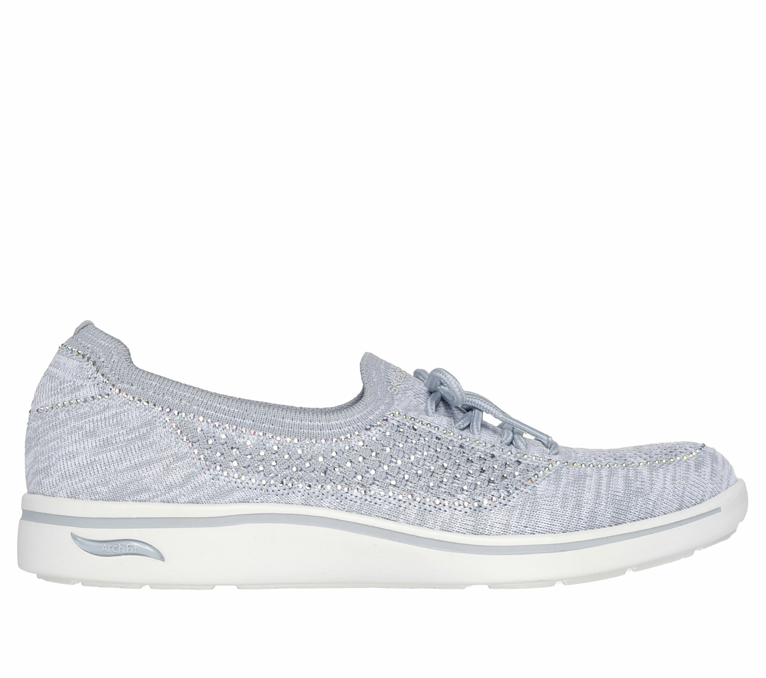 All-day comfort and easy-wearing style combine in Skechers Arch FitĀ® Uplift – Nova. Features a pull-on Stretch FitĀ® engineered knit upper with rhinestone embellishments, fixed laces, a removable Arch FitĀ® insole and lightweight ULTRA GOĀ® cushioning.
