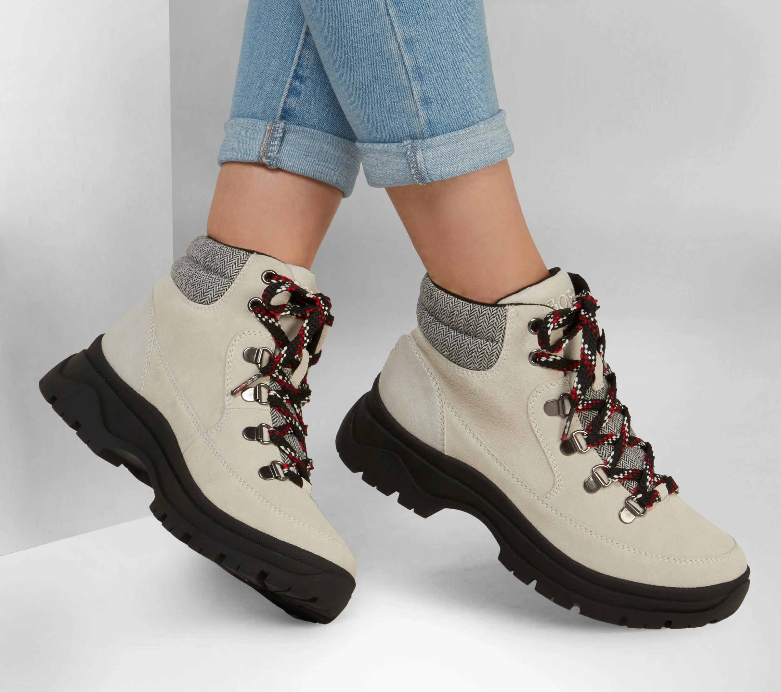 Outdoor style meets fun fashion in BOBS from Skechers™ Broadies – Mighty Hike. This lace-up casual fashion ankle boot features a suede and woven fabric upper with a cushioned Skechers Memory Foam™ insole. For every BOBS purchase, a donation is made to animals in need.