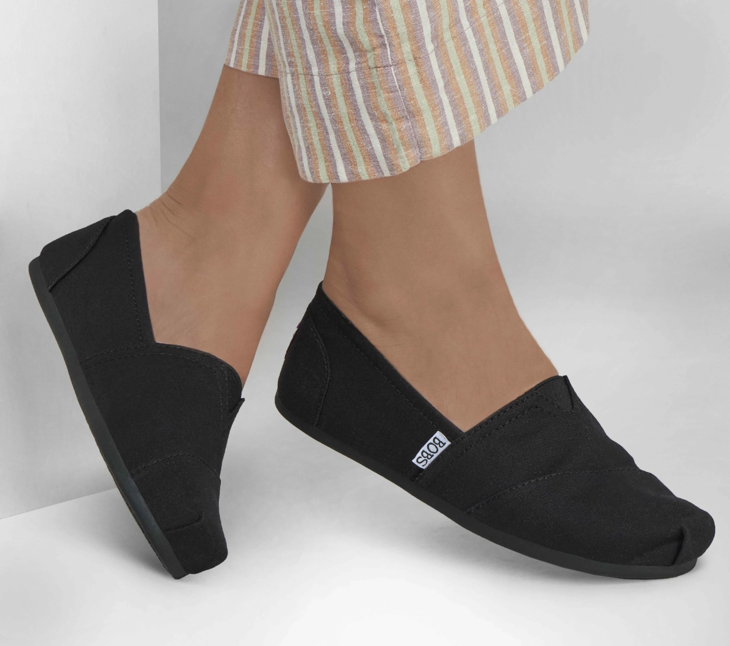 Slip on effortless style and feet-loving comfort with the BOBS from Skechers™ Plush – Peace and Love shoe. This casual alpargata flat features a canvas upper with a cushioned Memory Foam insole. For every BOBS purchase, a donation is made to animals in need.