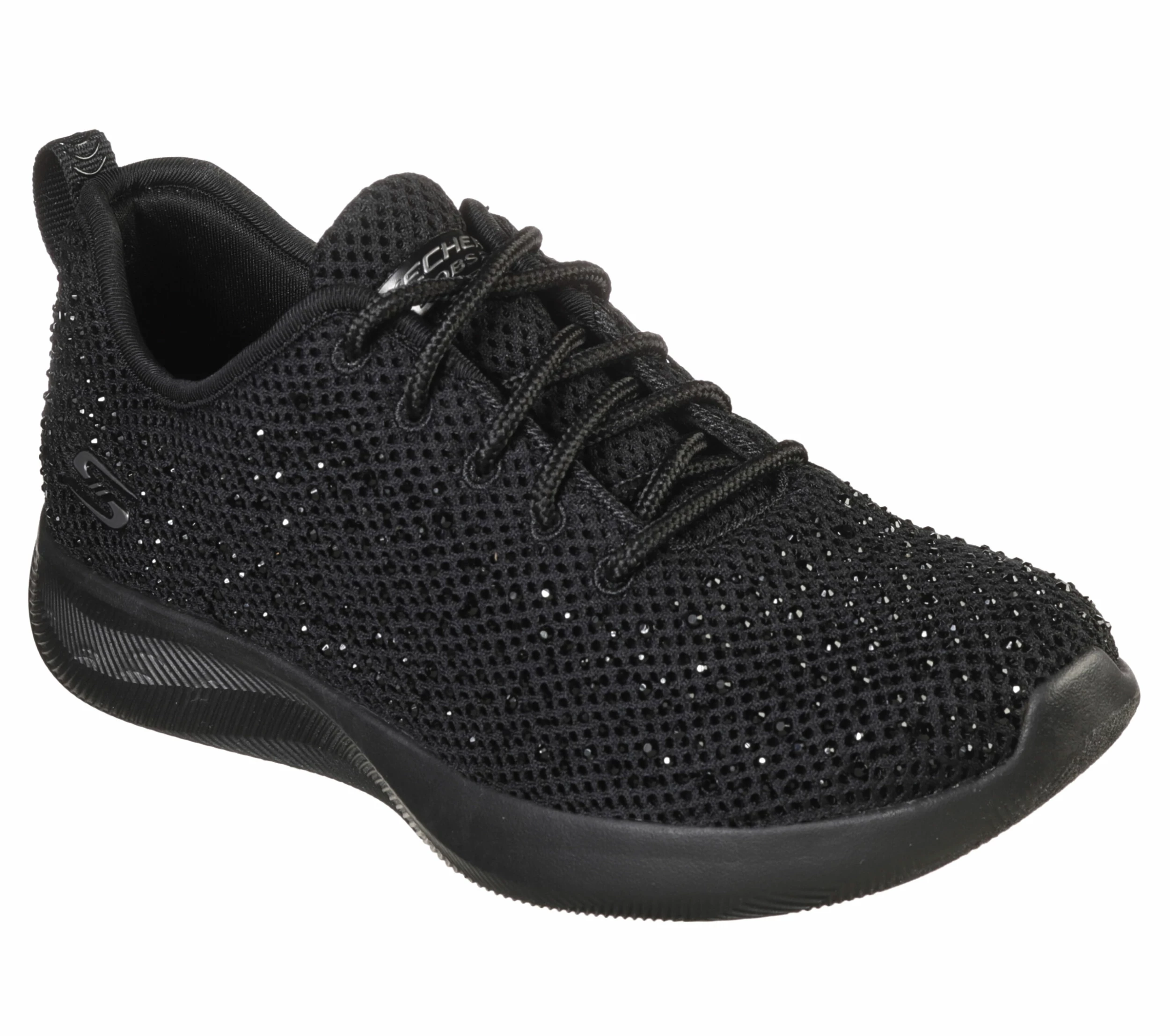 - Rhinestone studded Skech-Knit upper with lace-up front