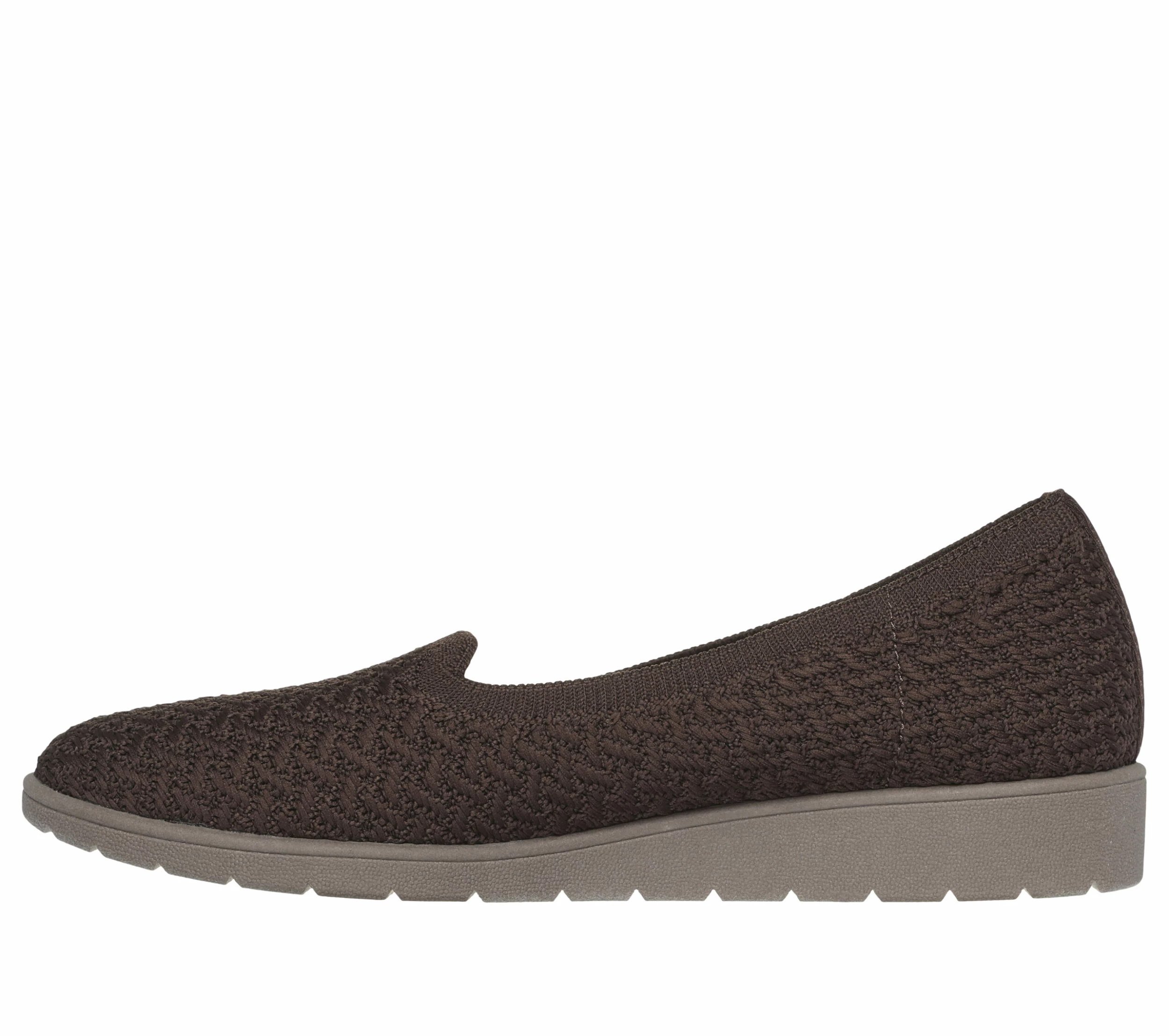 Refresh your look in comfortable style with Skechers Cleo® Flex Wedge – Doin’ Alright. Designed with recycled materials, this Stretch Fit® skimmer flat features a textured knit upper with a cushioned Skechers Air-Cooled Memory Foam® insole and a low wedge heel. Our Planet Matters: Good for your feet. Good for the world.