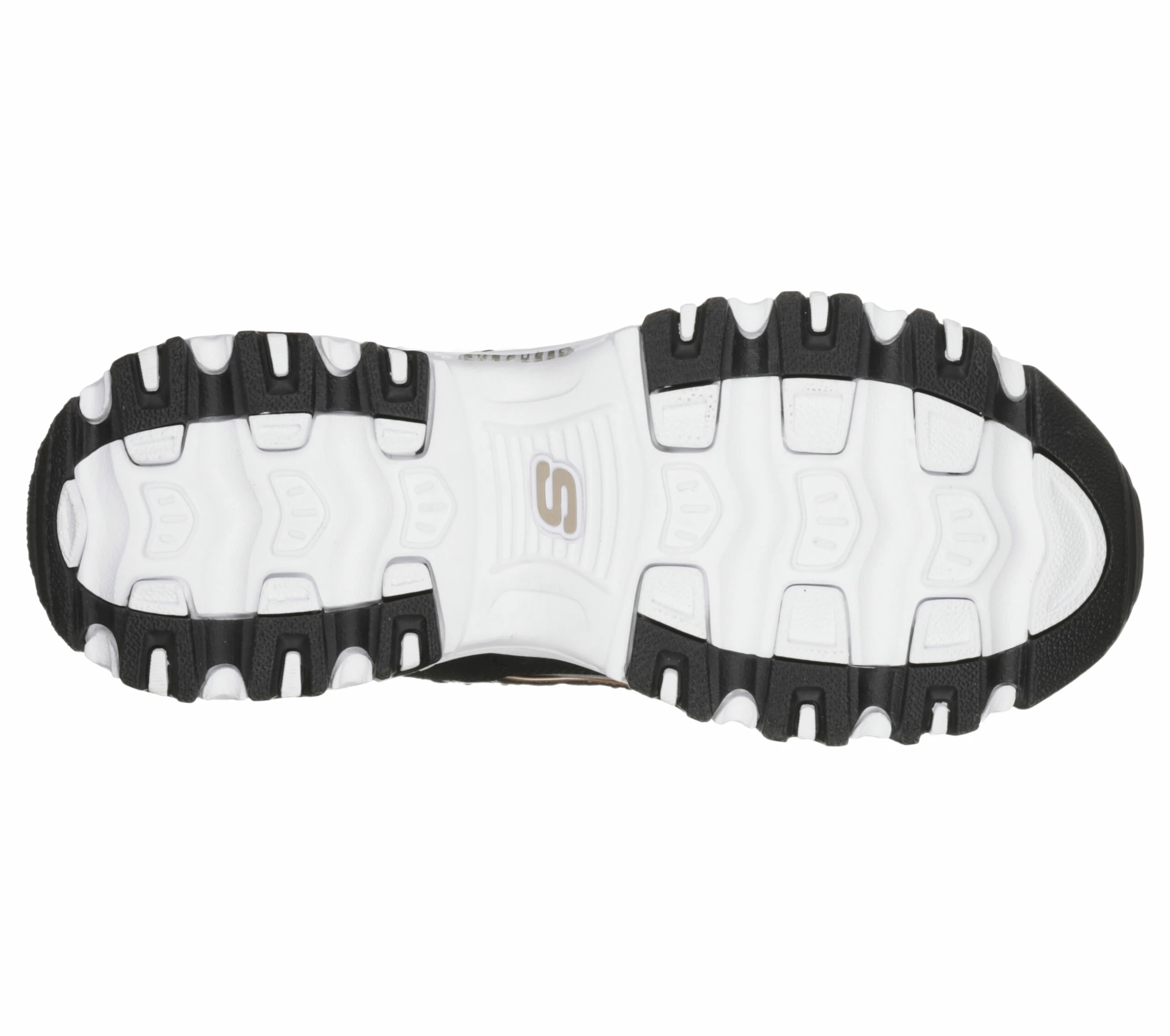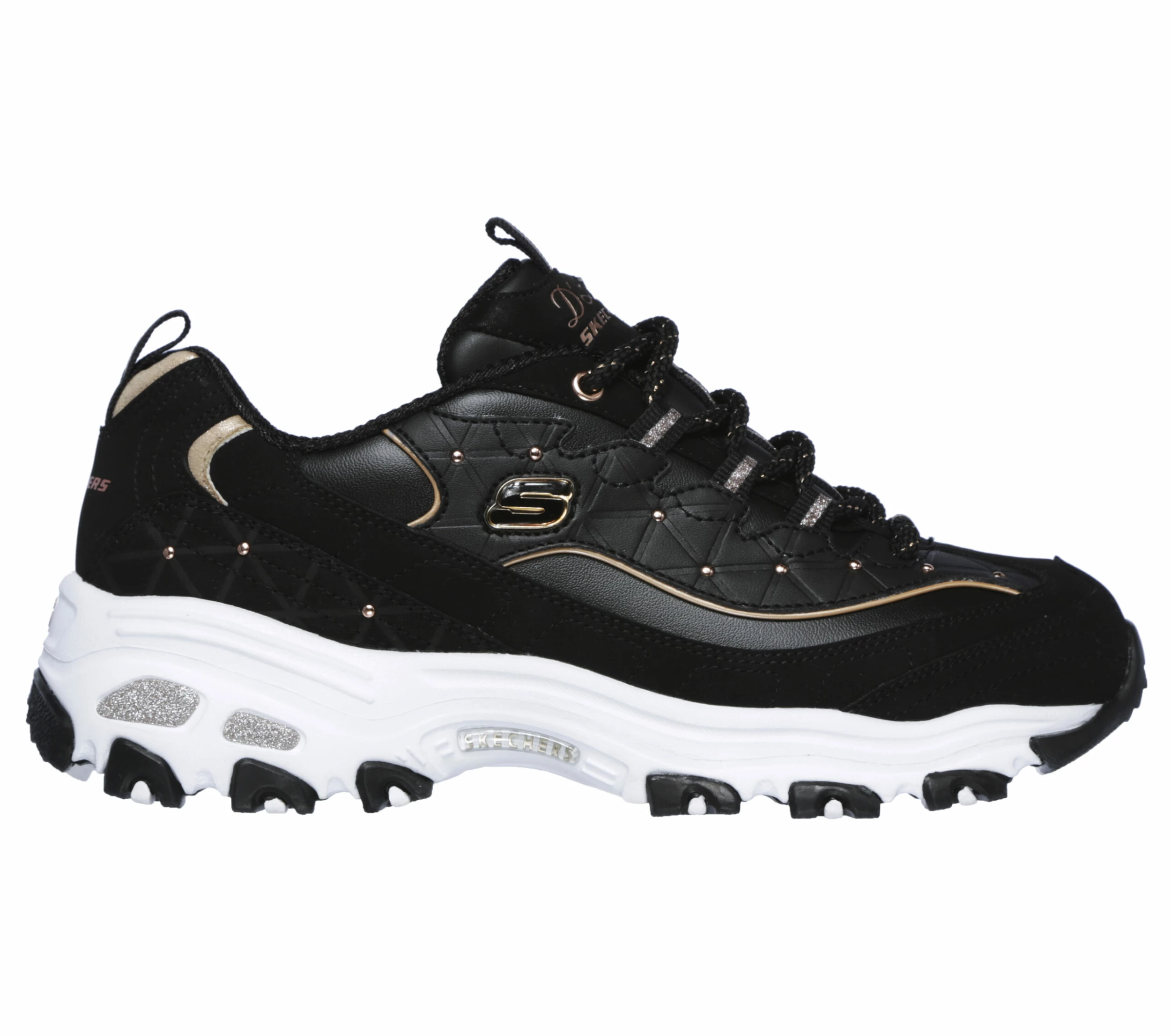 A popular classic sneaker style gets a fashionable new look with the SKECHERS D’Lites – Glamour Feels shoe. Smooth leather and metallic synthetic upper in a lace up sporty casual sneaker with stitching and overlay accents. Air Cooled Memory Foam insole.