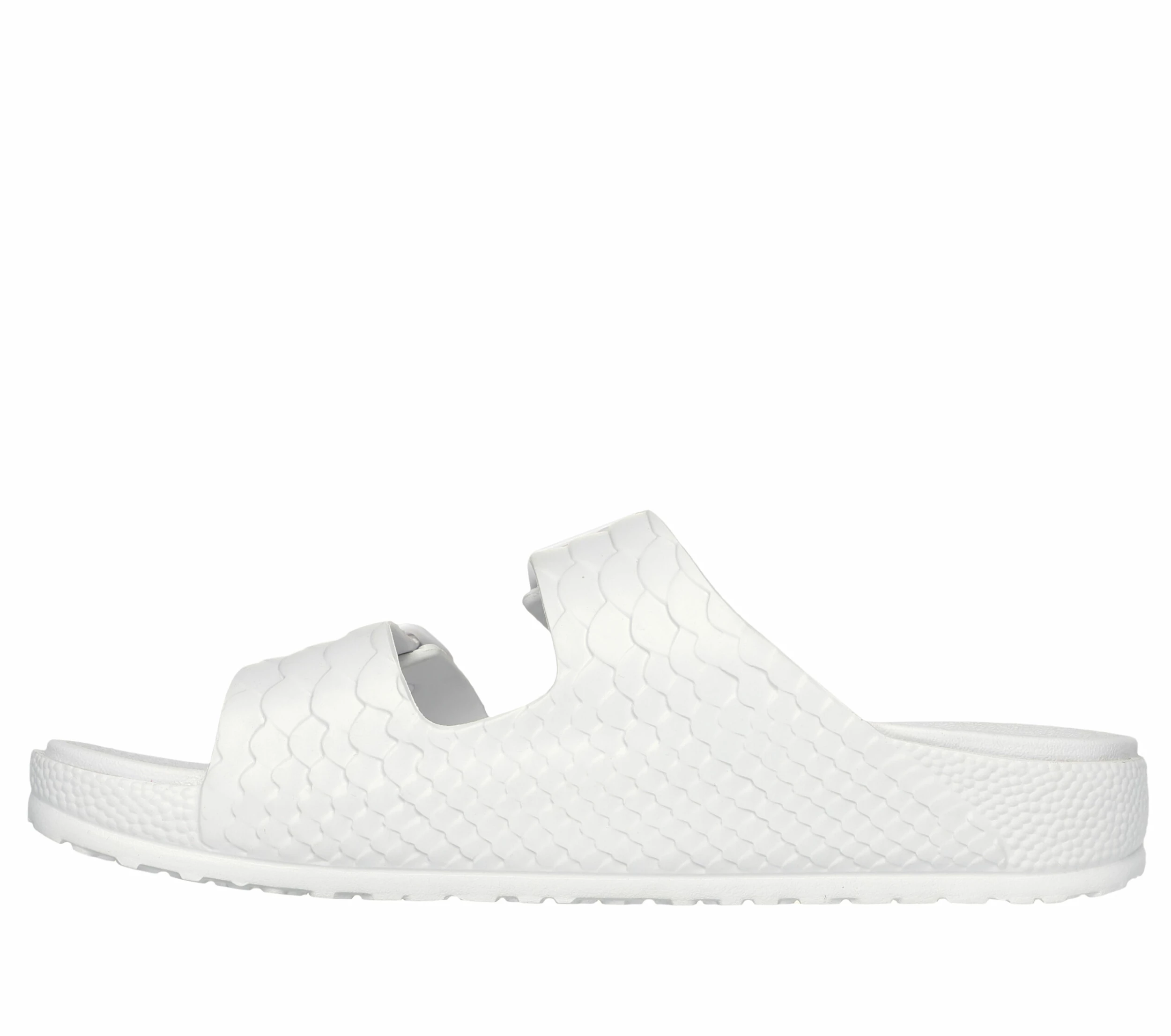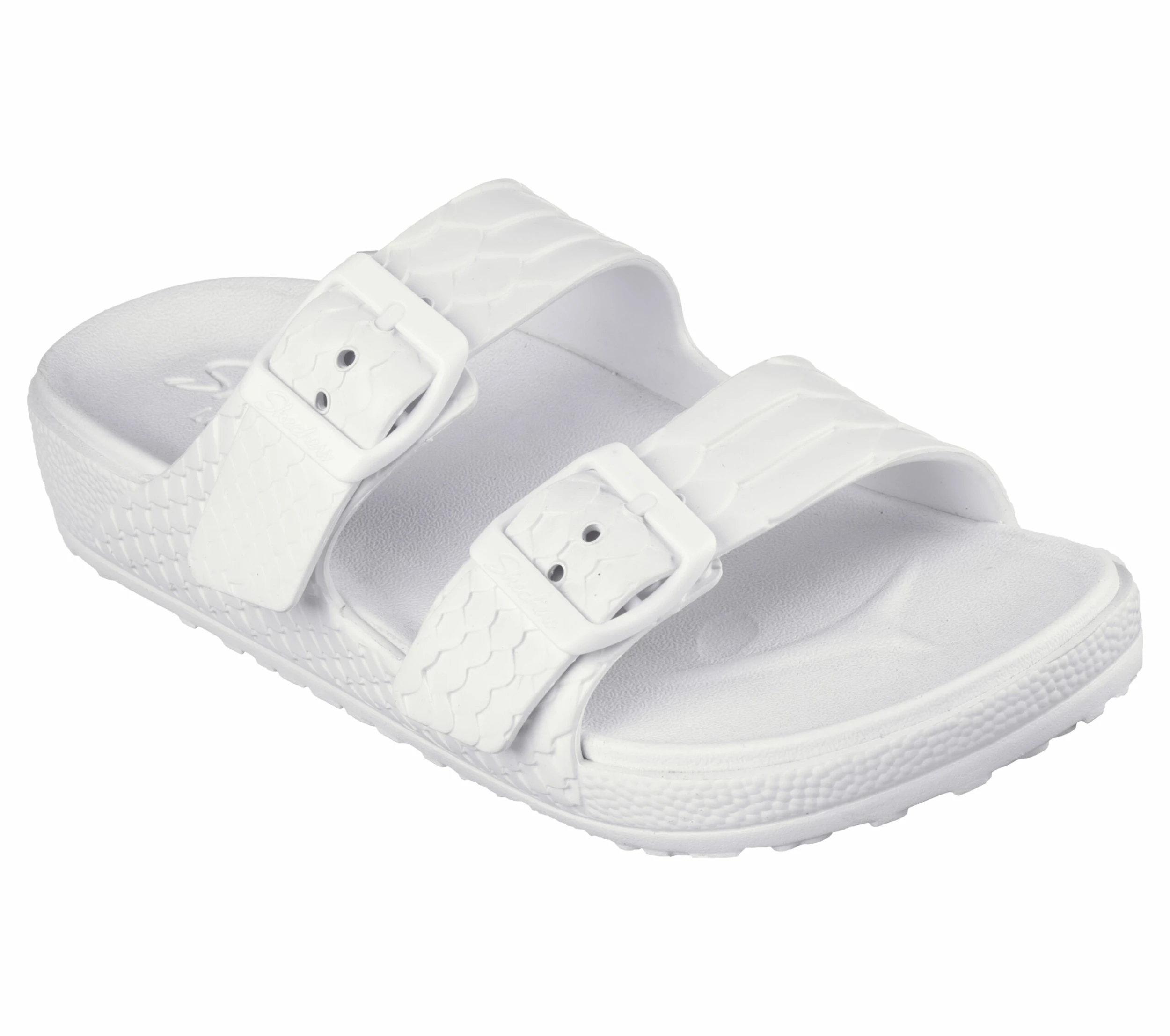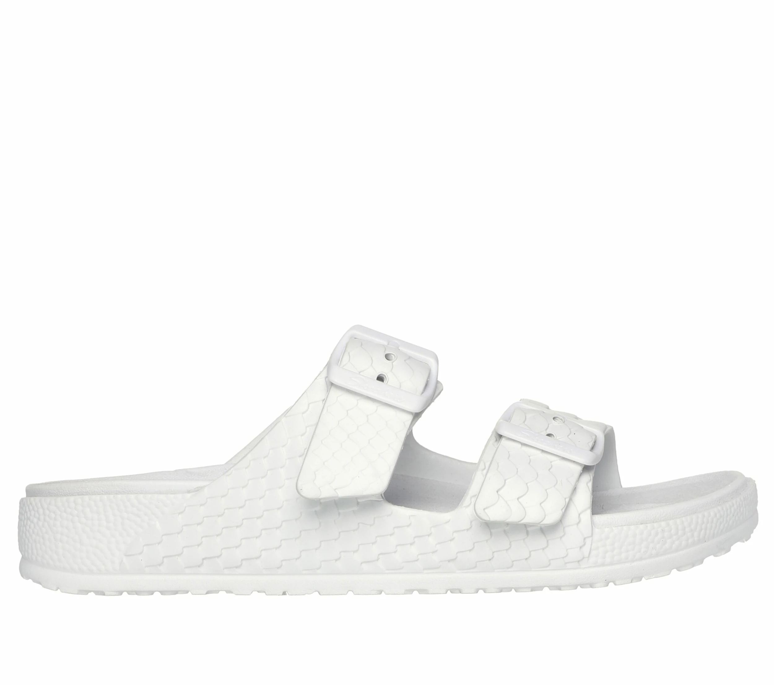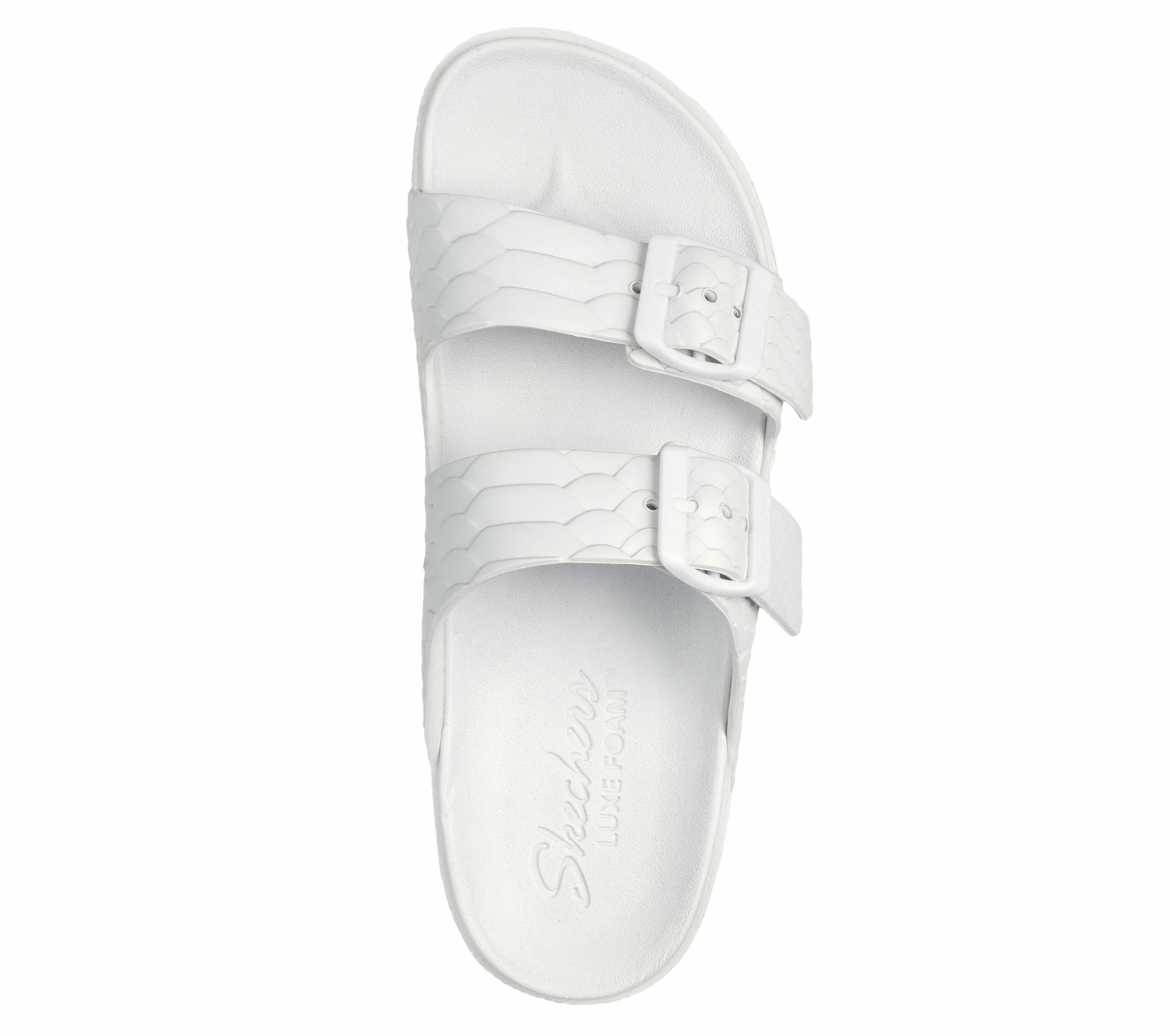 Enjoy textured, easy-wearing comfort in Skechers Foamies: Cali Breeze 2.0 – Royal Texture. Sculpted reptile-embossed EVA foam upper in a casual comfort two-strap slide with metal buckles and contoured Luxe FoamĀ® footbed.