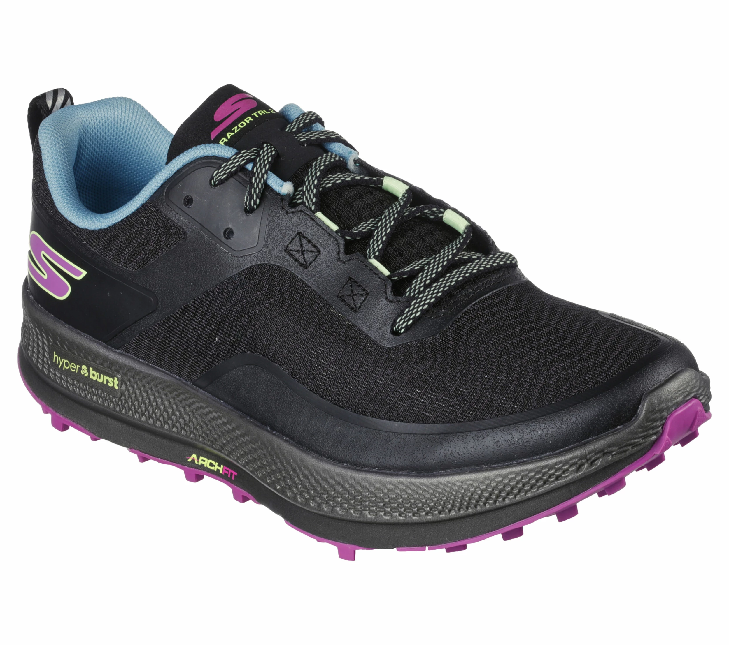 Take on the trails with superior comfort and speed in Skechers GO RUN® Arch Fit® Razor TRL – 2. This lace-up trail running design features a breathable monomesh and synthetic upper with a removable Arch Fit® insole, an ultra-lightweight HYPER BURST® cushioned midsole, HYPER ARC™ rocker bottom, and a durable Goodyear® Performance Outsole.