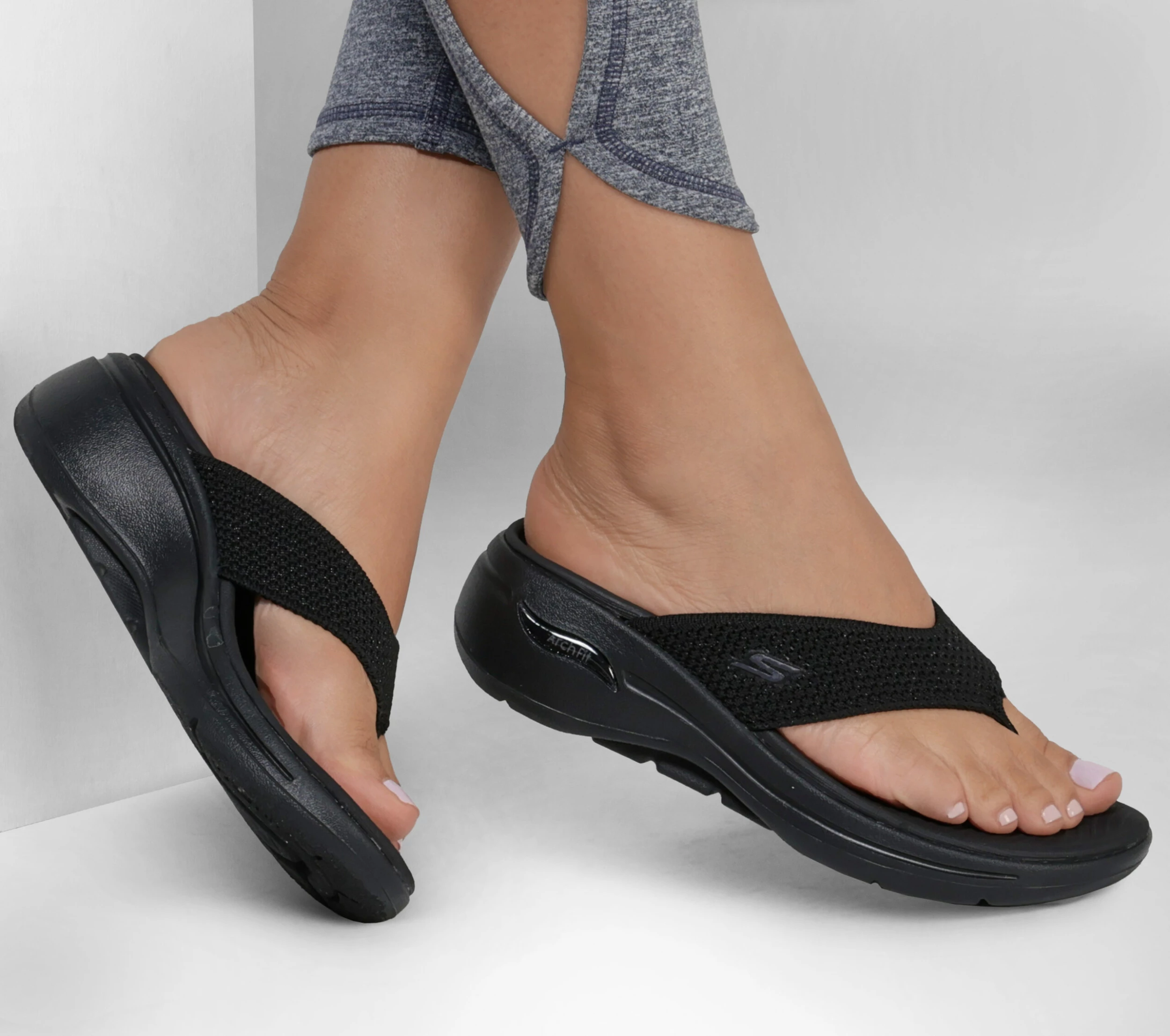 Delight your feet with supportive comfort and easygoing style wearing Skechers GO WALK Arch Fit® Sandal – Luminous. This Arch Fit® designed sandal features a shimmer knit upper with a contoured Goga Mat® footbed, lightweight ULTRA GO® cushioning and Comfort Pillar Technology® for added support.