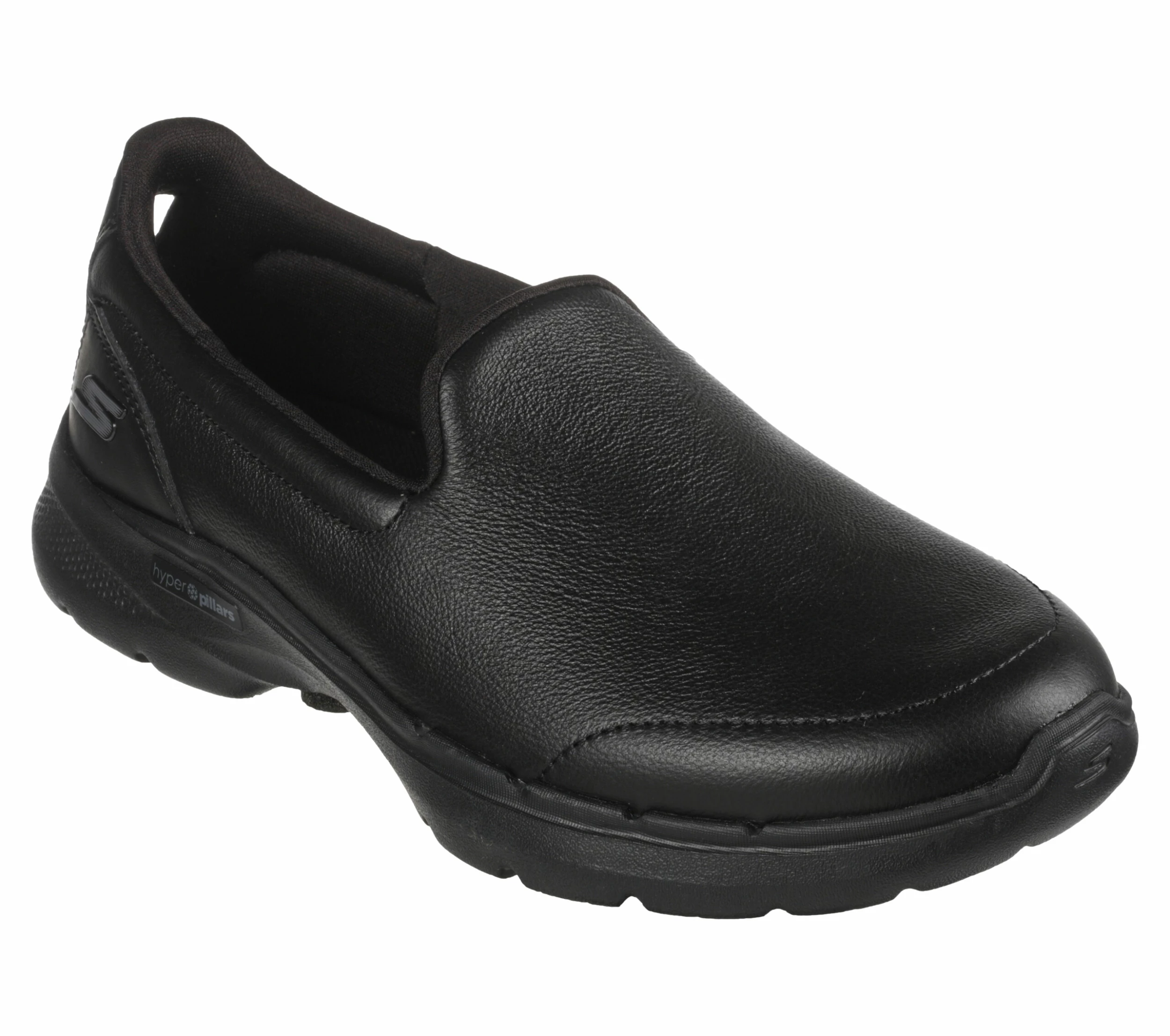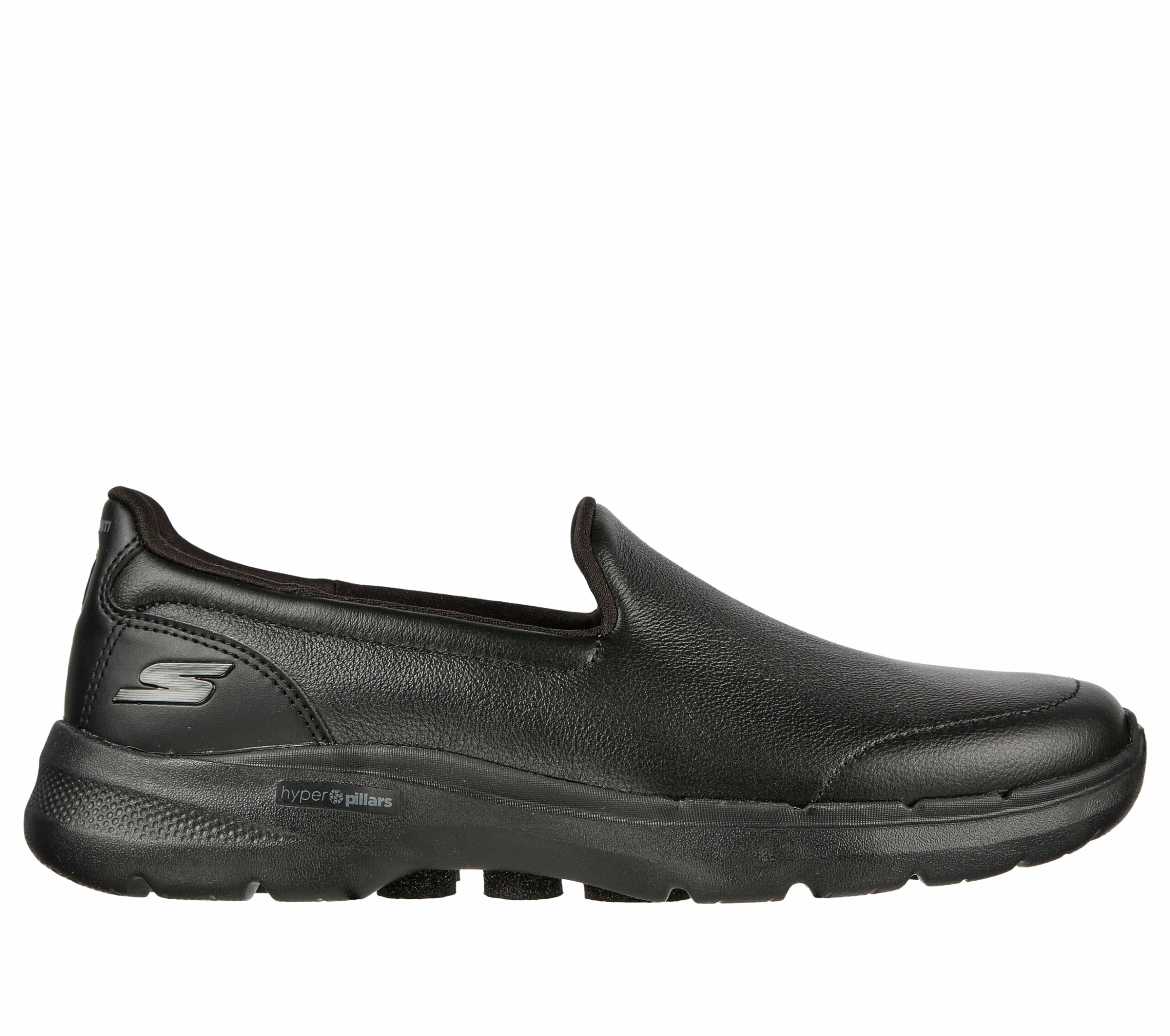 Walk in easy-wearing comfort with Skechers GO WALK 6 – Dorin. This laceless fit design features a smooth leather upper with lightweight ULTRA GO® cushioning, an Air-Cooled Goga Mat insole and high-rebound Hyper Pillar Technology for added support.