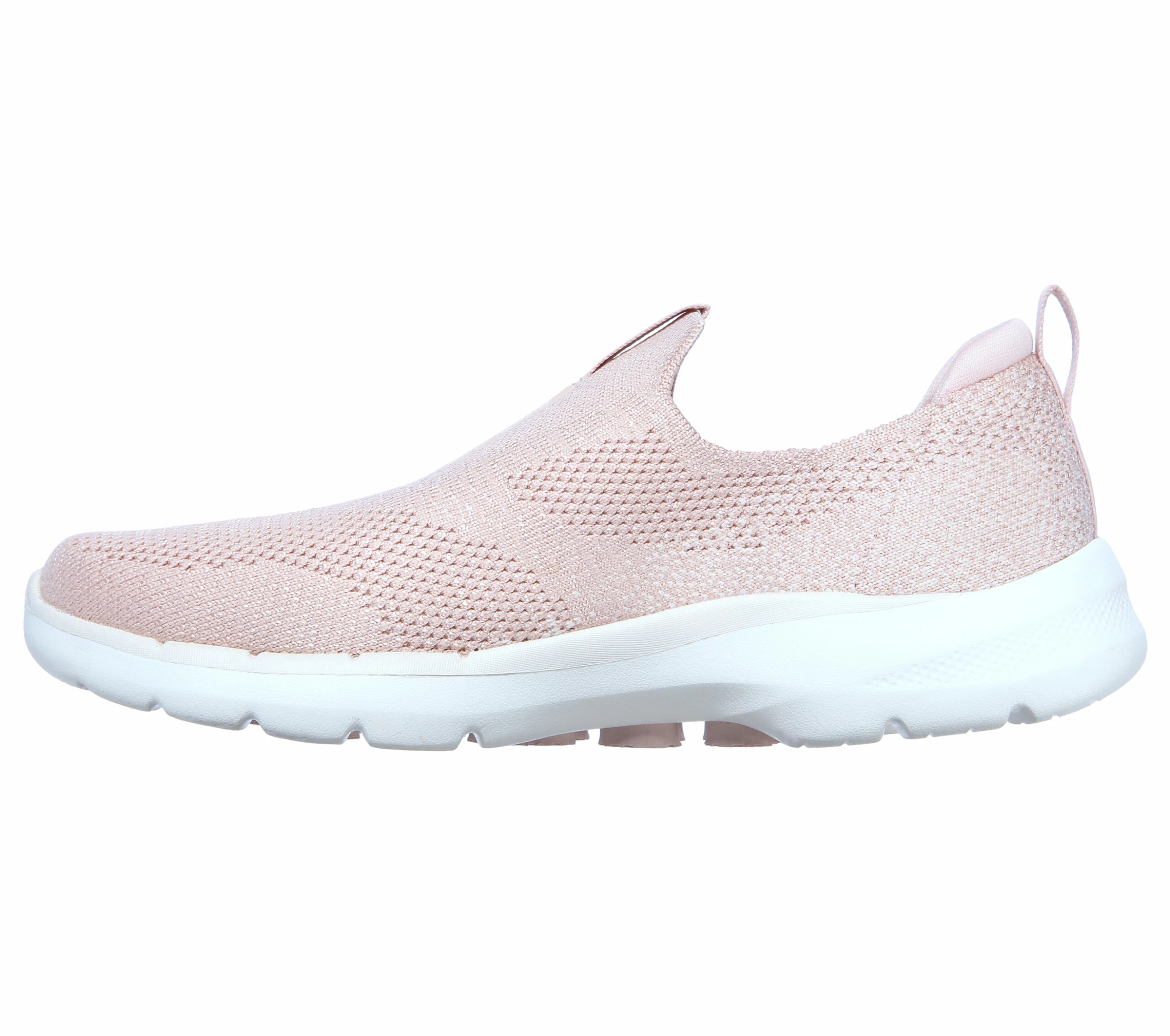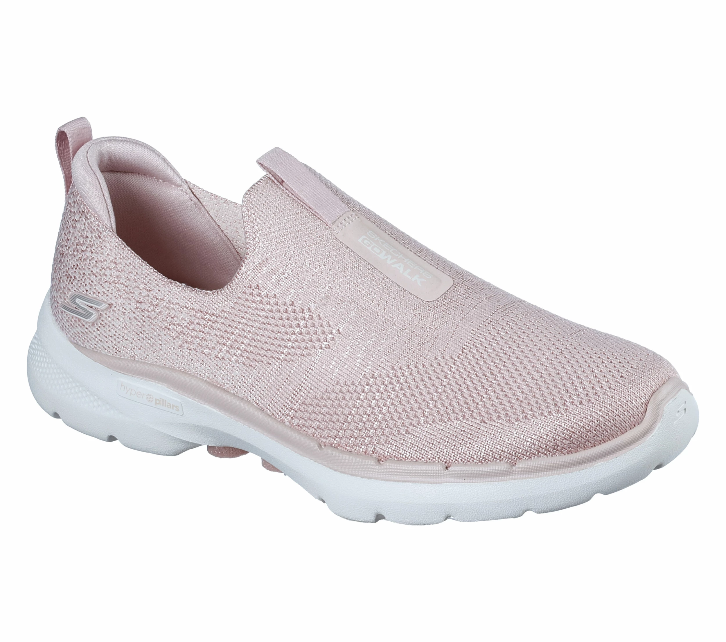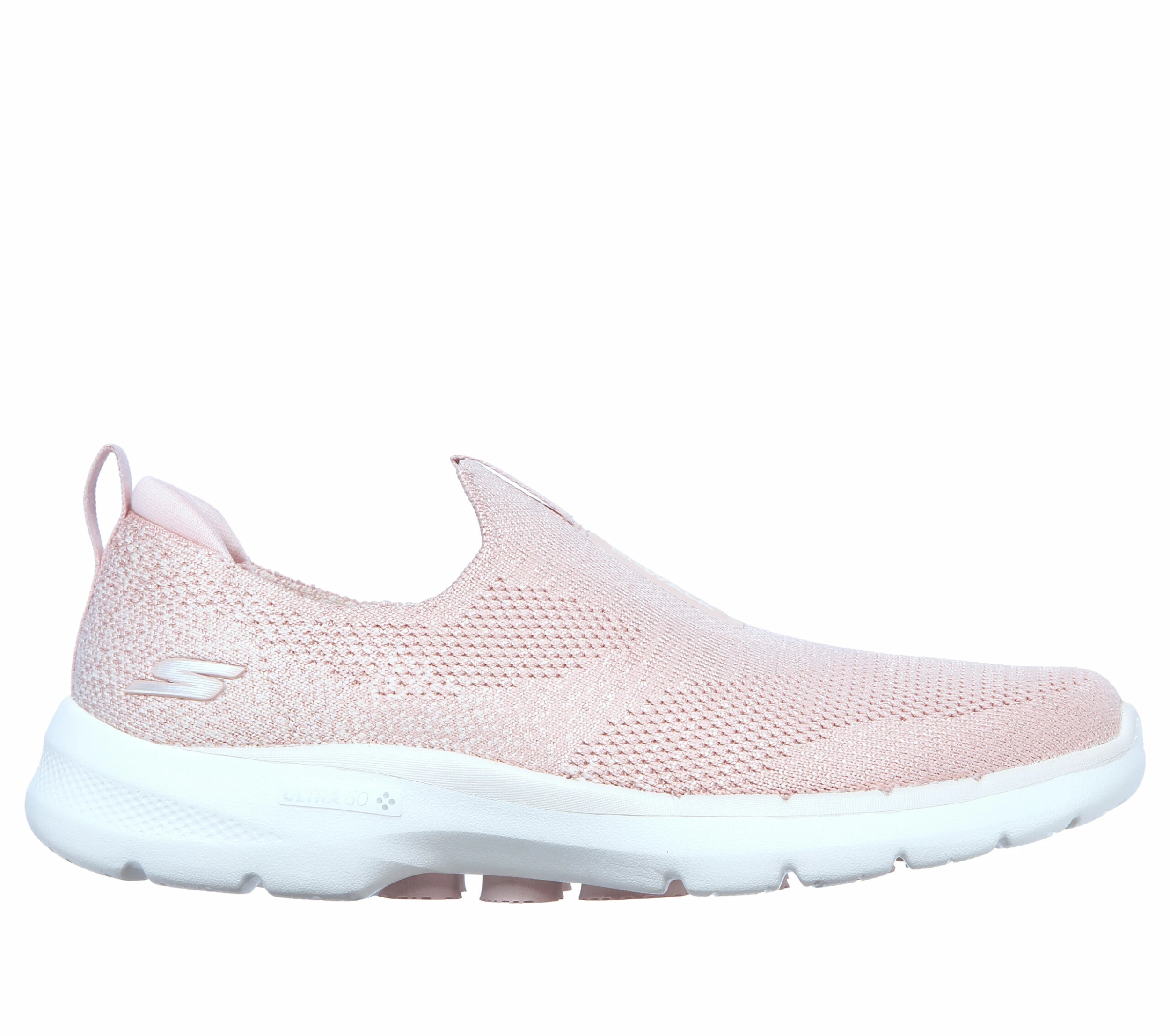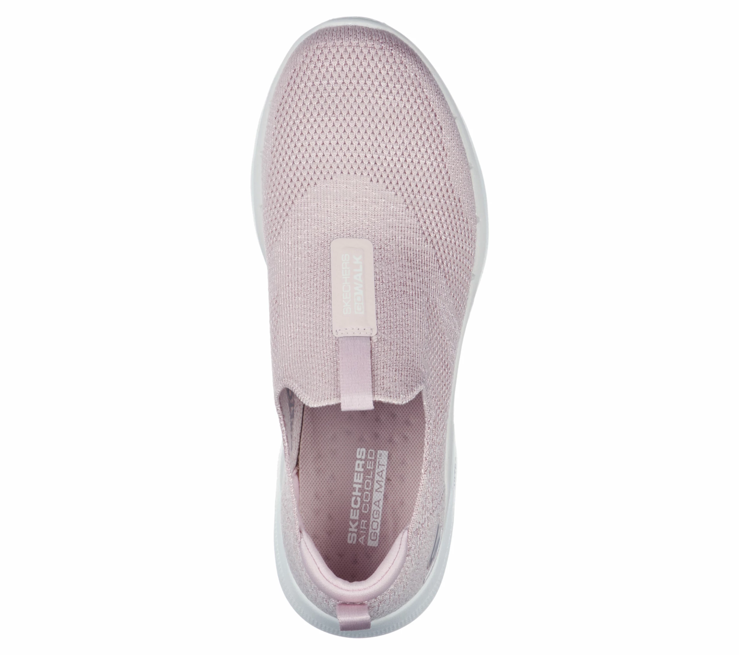 Take a shine to elevated comfort with the Skechers GO WALK 6 shoe. This pull-on sneaker features an athletic engineered flat knit upper with an Air-Cooled Goga Mat insole, lightweight ULTRA GO cushioning midsole and high-rebound Hyper Pillar Technology for added support.