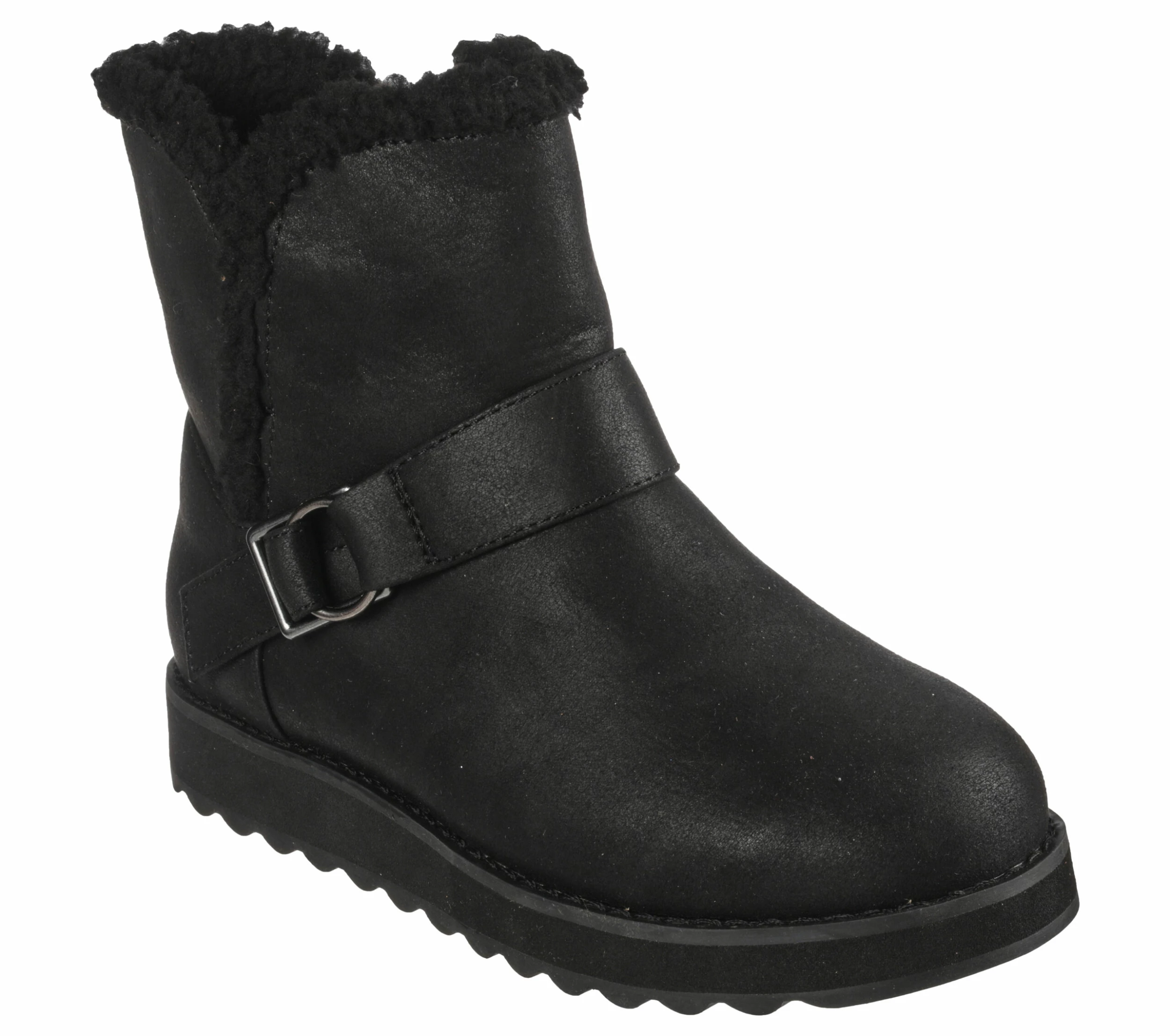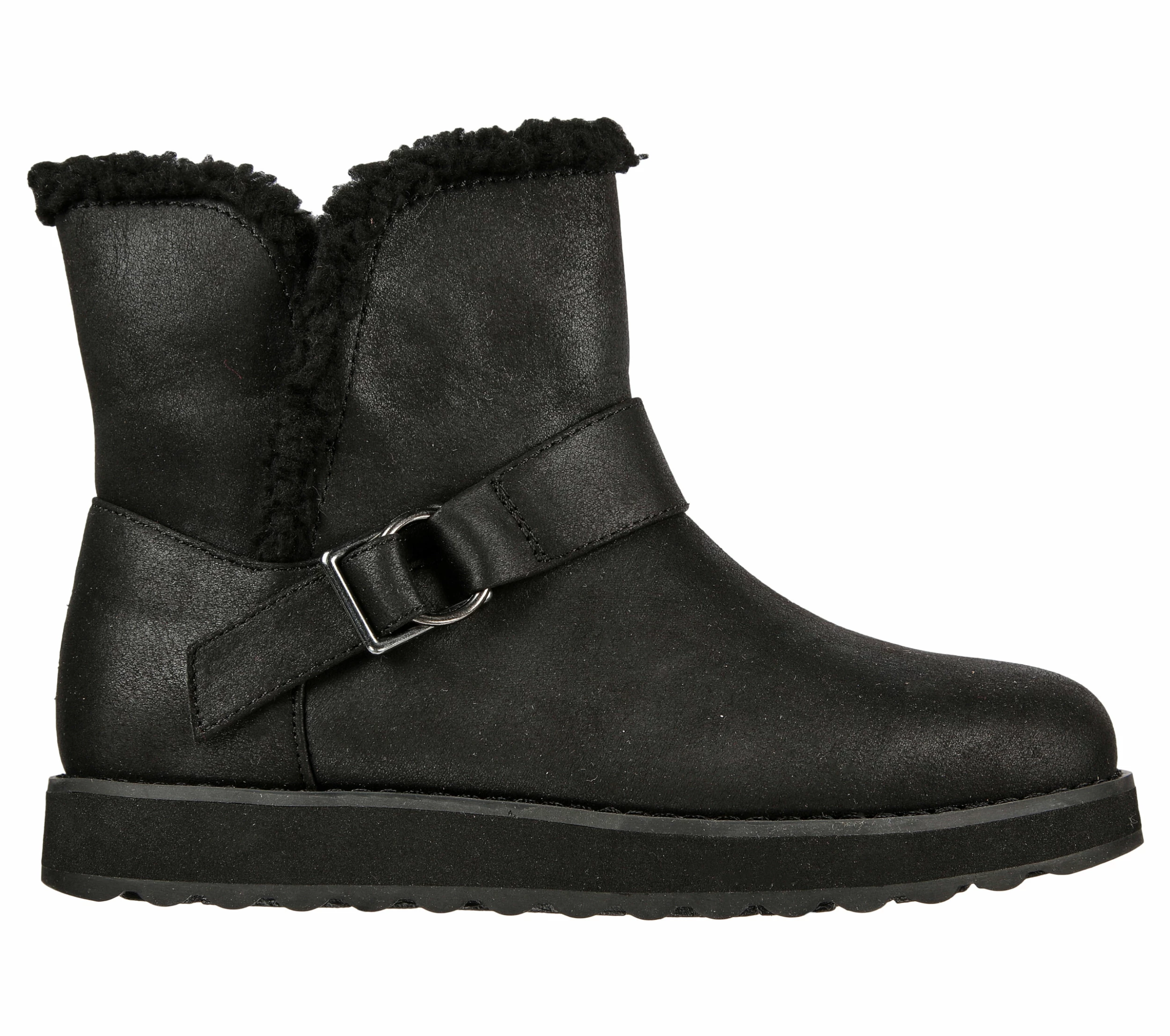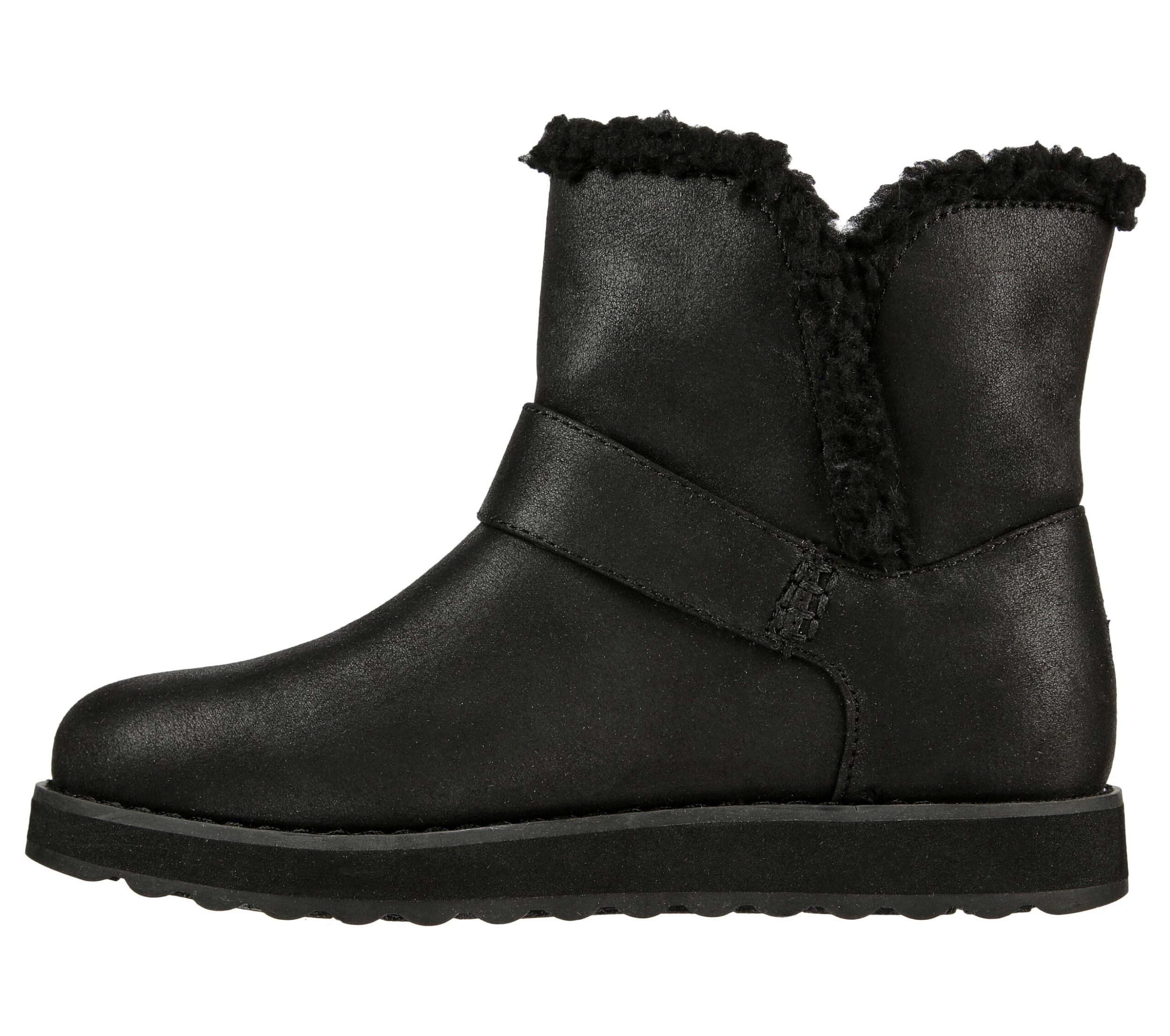 Stay warm and stylish throughout chilly season in Skechers Keepsakes 2.0 – Cabin Feels. This slip-on water-resistant boot features a synthetic microleather upper with a sherpa trim and a cushioned Skechers Warm Tech Memory Foam insole.