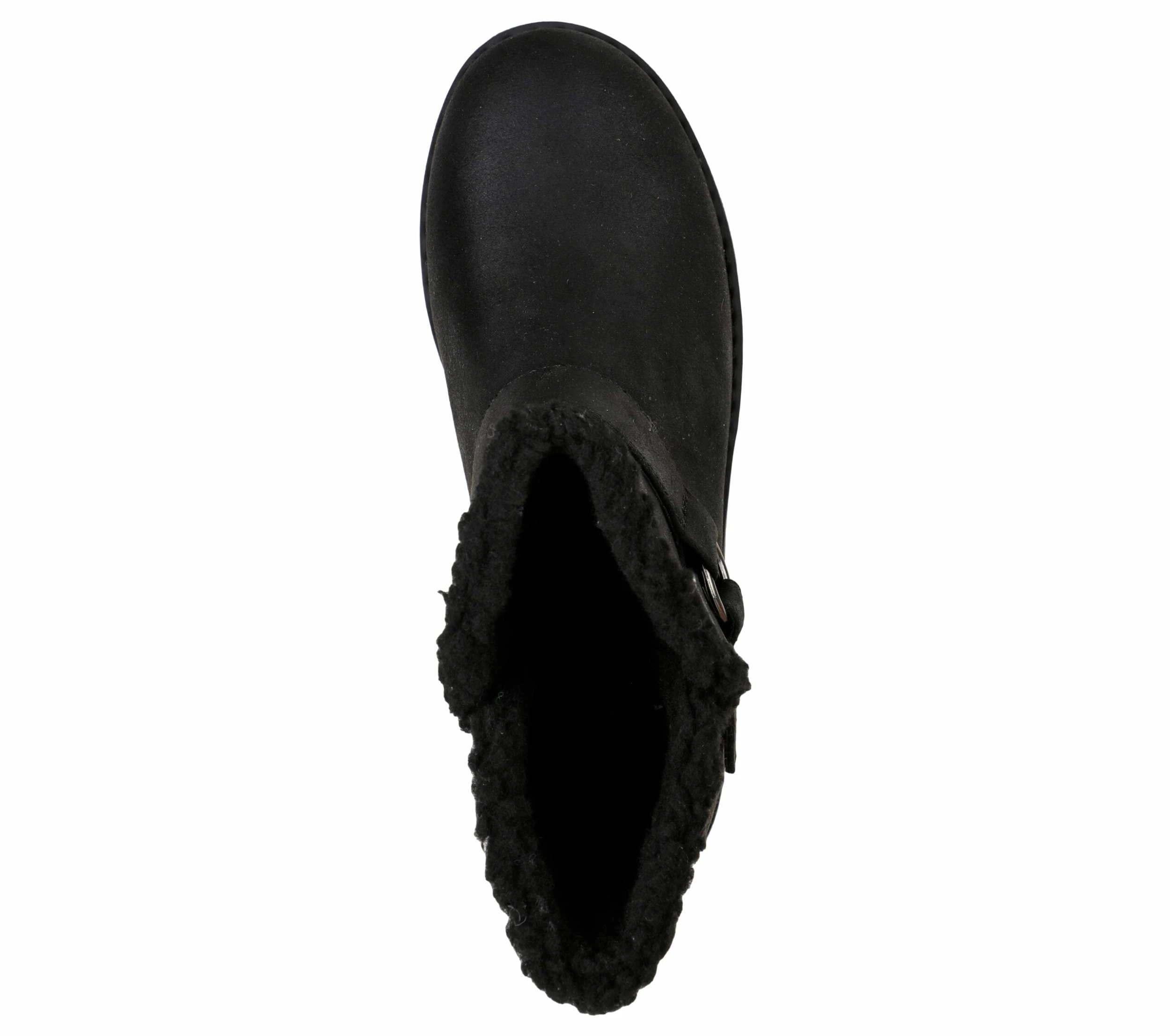 - Synthetic microleather upper with sherpa trim and lining