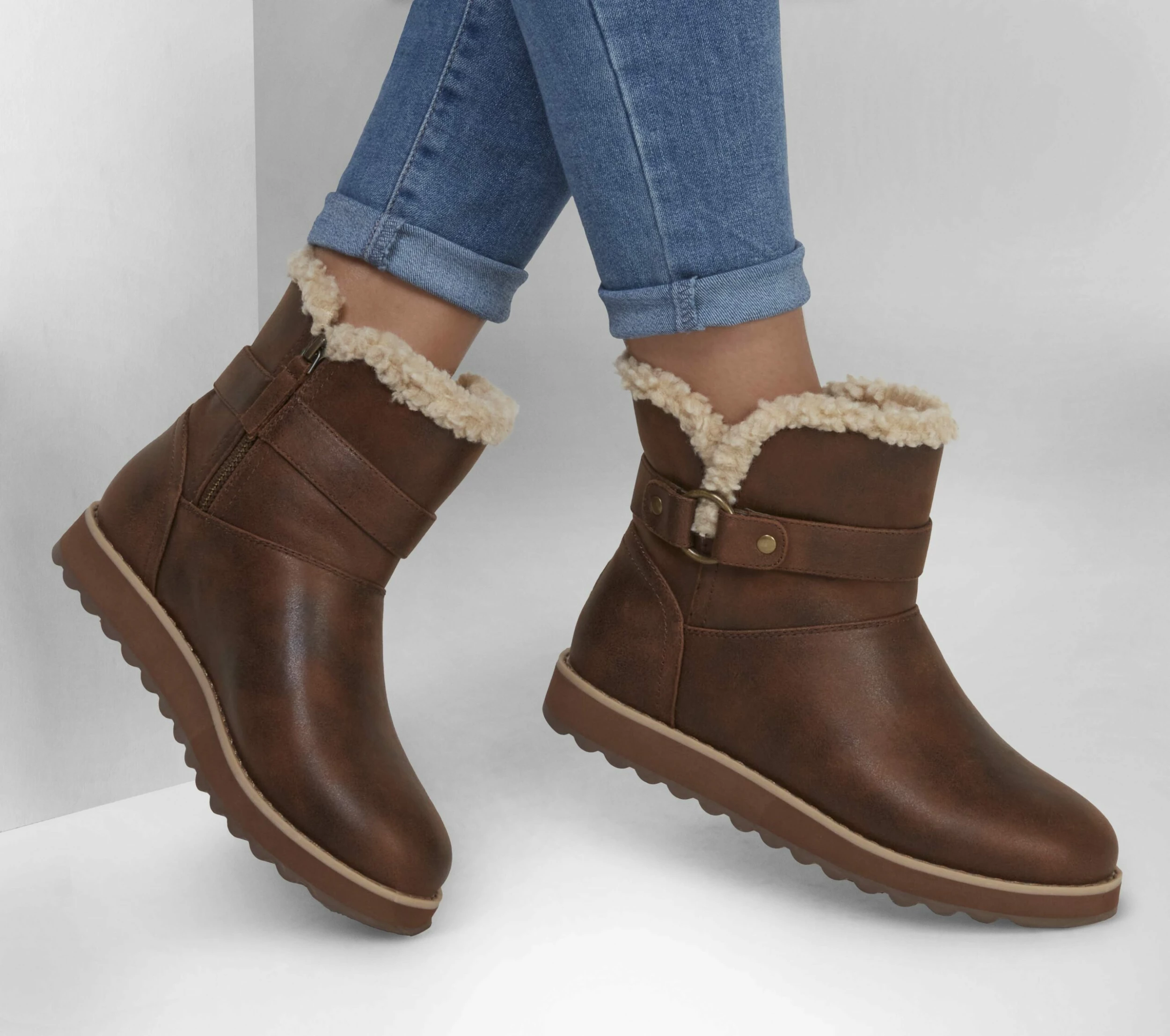 Stay warm and stylish throughout chilly season in Skechers Keepsakes 2.0 – Home Sweet Home. This slip-on cold-weather boot features a 3MĀ® ScotchgardĀ® treated synthetic microleather upper with a sherpa trim and a cushioned Skechers Warm Tech Memory Foam insole.