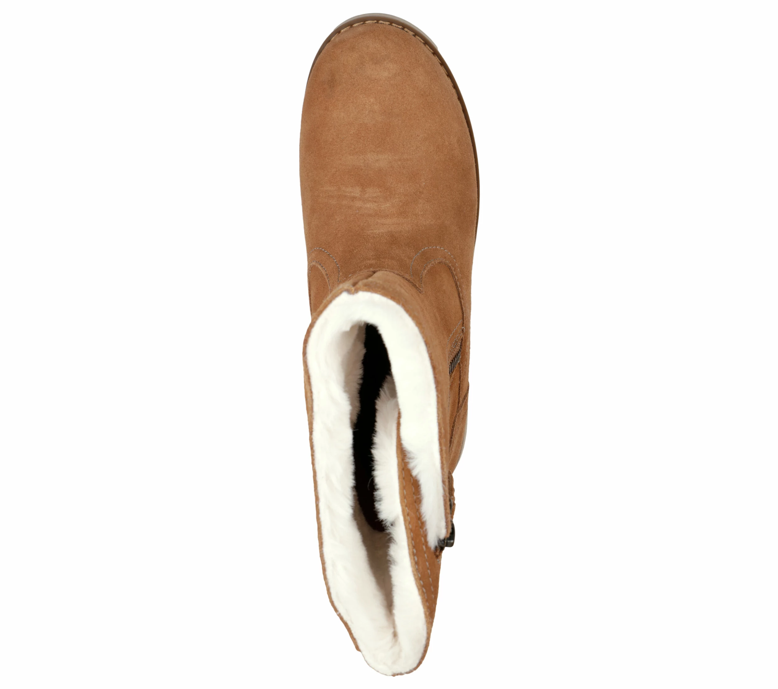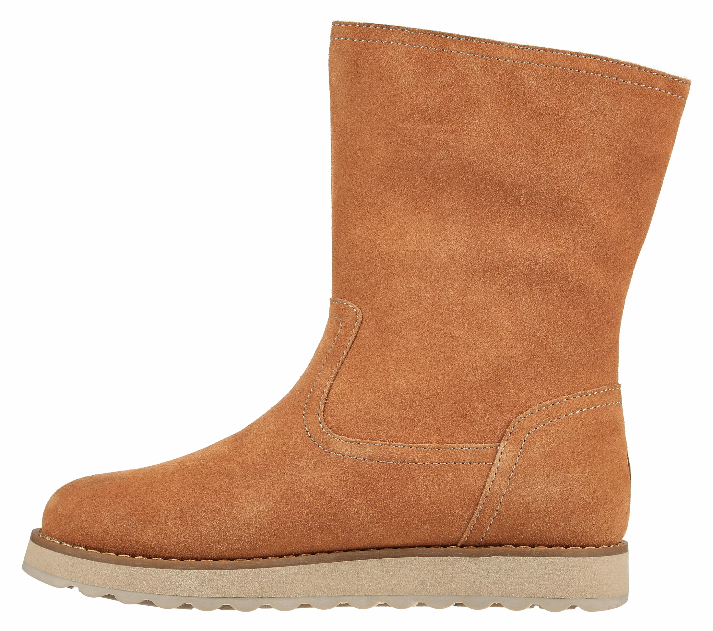 Step into cozy comfort this season in Skechers Keepsakes 2.0 – Warm Road. This casual cold-weather boot features a soft suede upper with a faux-fur trim, side zip closure and a cushioned Skechers Warm Tech Memory Foam insole.