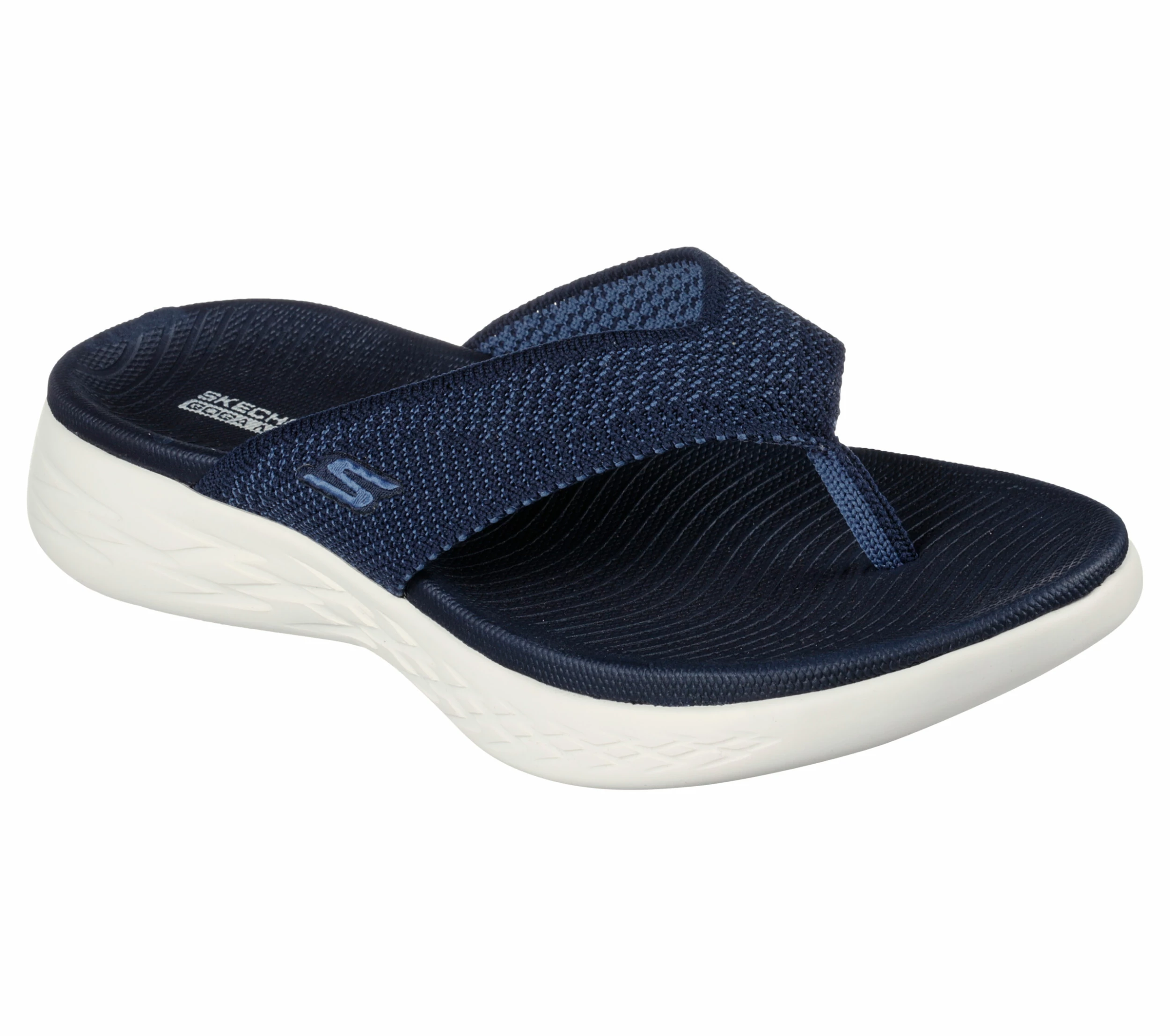 Walk with warm-weather style and comfort wearing Skechers On-the-GOĀ® 600 – Flourish. This sporty 3-point thong sandal features a soft two-toned woven mesh upper, supportive contoured Goga MatĀ® footbed design and lightweight 5GENĀ® cushioning.