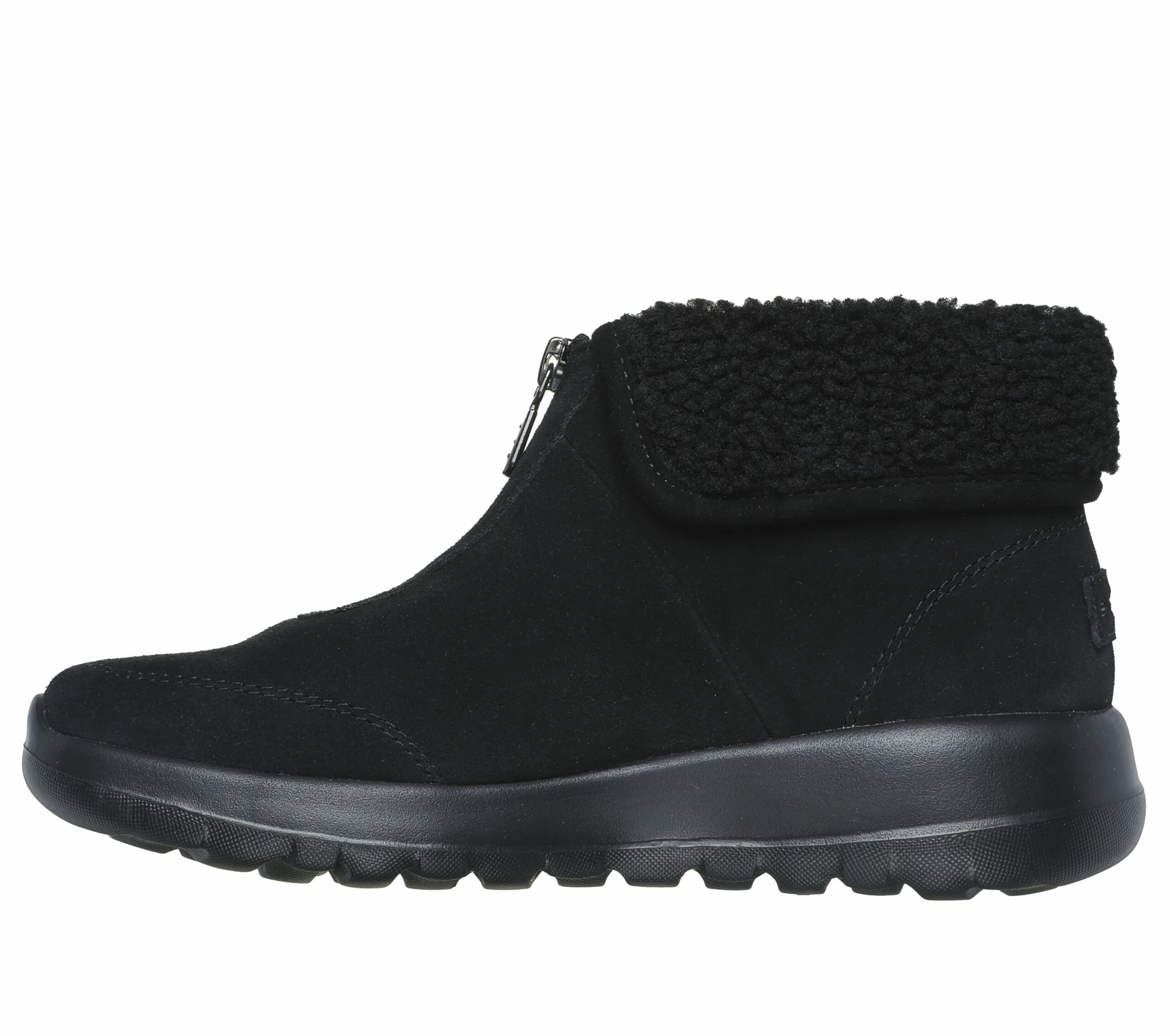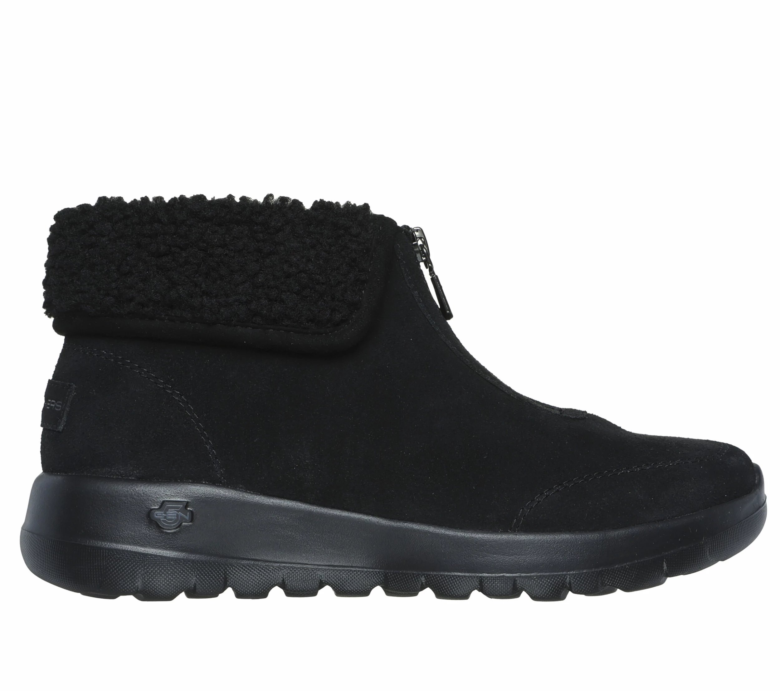 Delight your feet with plush comfort and style wearing Skechers On-the-GO® Joy – Nuzzle Up. This casual cold-weather zip boot features a 3M® Scotchgard® treated suede upper with sherpa lining, a Skechers Air-Cooled Goga Mat insole, and a lightweight 5GEN® cushioned midsole.