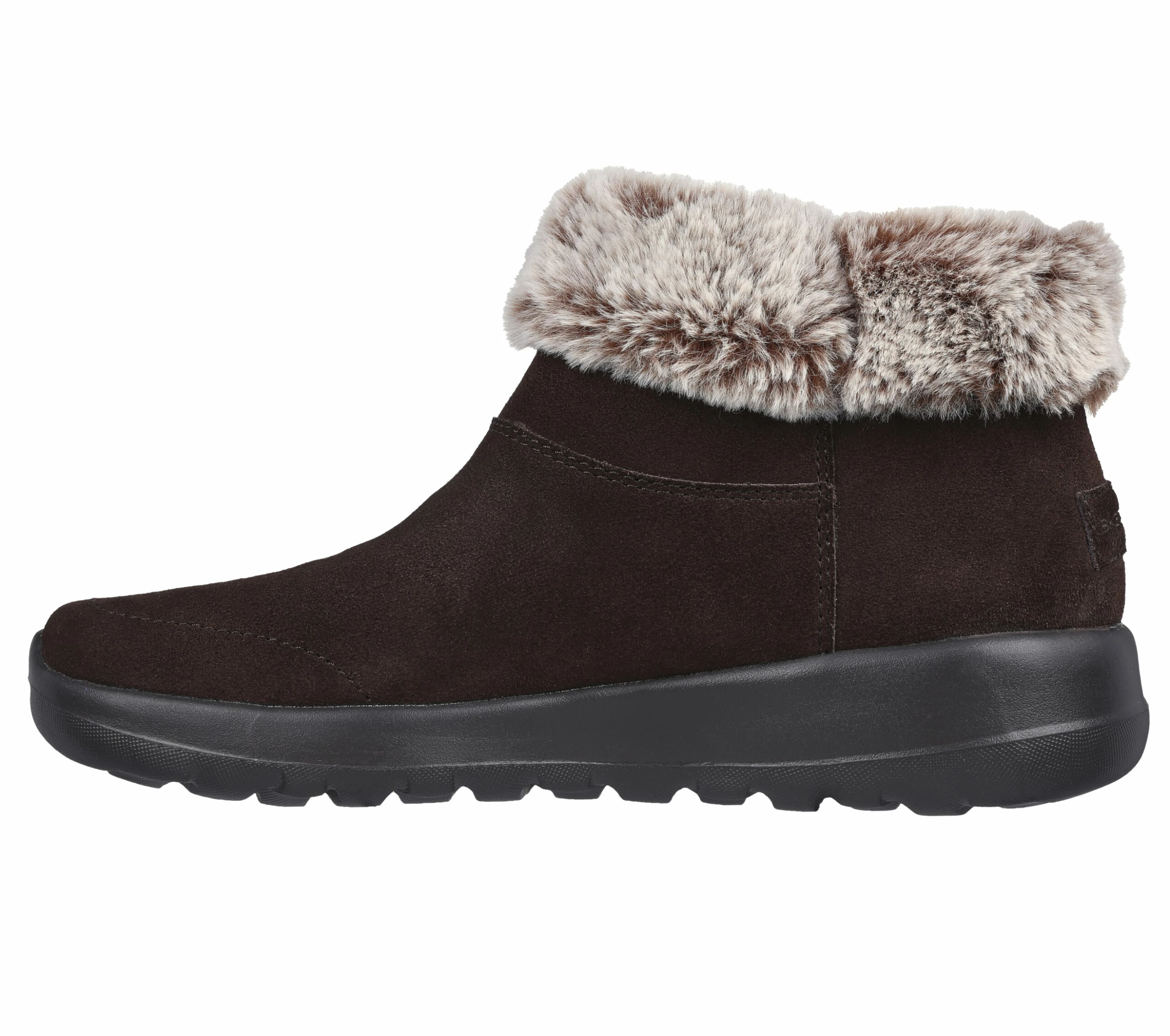 Delight your feet with plush comfort and style wearing Skechers On-the-GO® Joy – Savvy. This casual cold-weather bootie features a 3M® Scotchgard® treated suede upper with faux fur trim, chenille lining, side zip closure, a Skechers Air-Cooled Goga Mat insole, and lightweight 5GEN® Technology midsole cushioning.