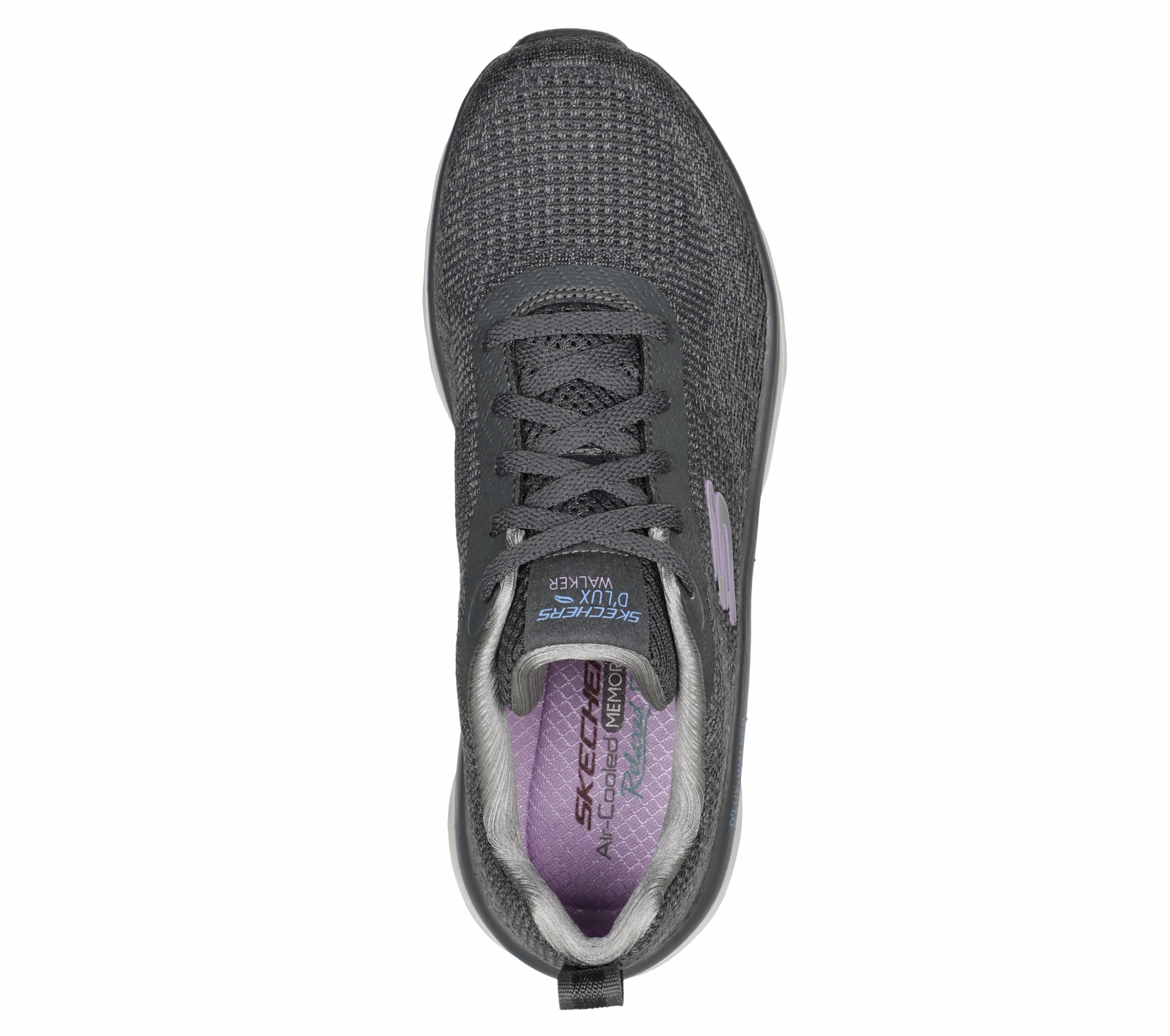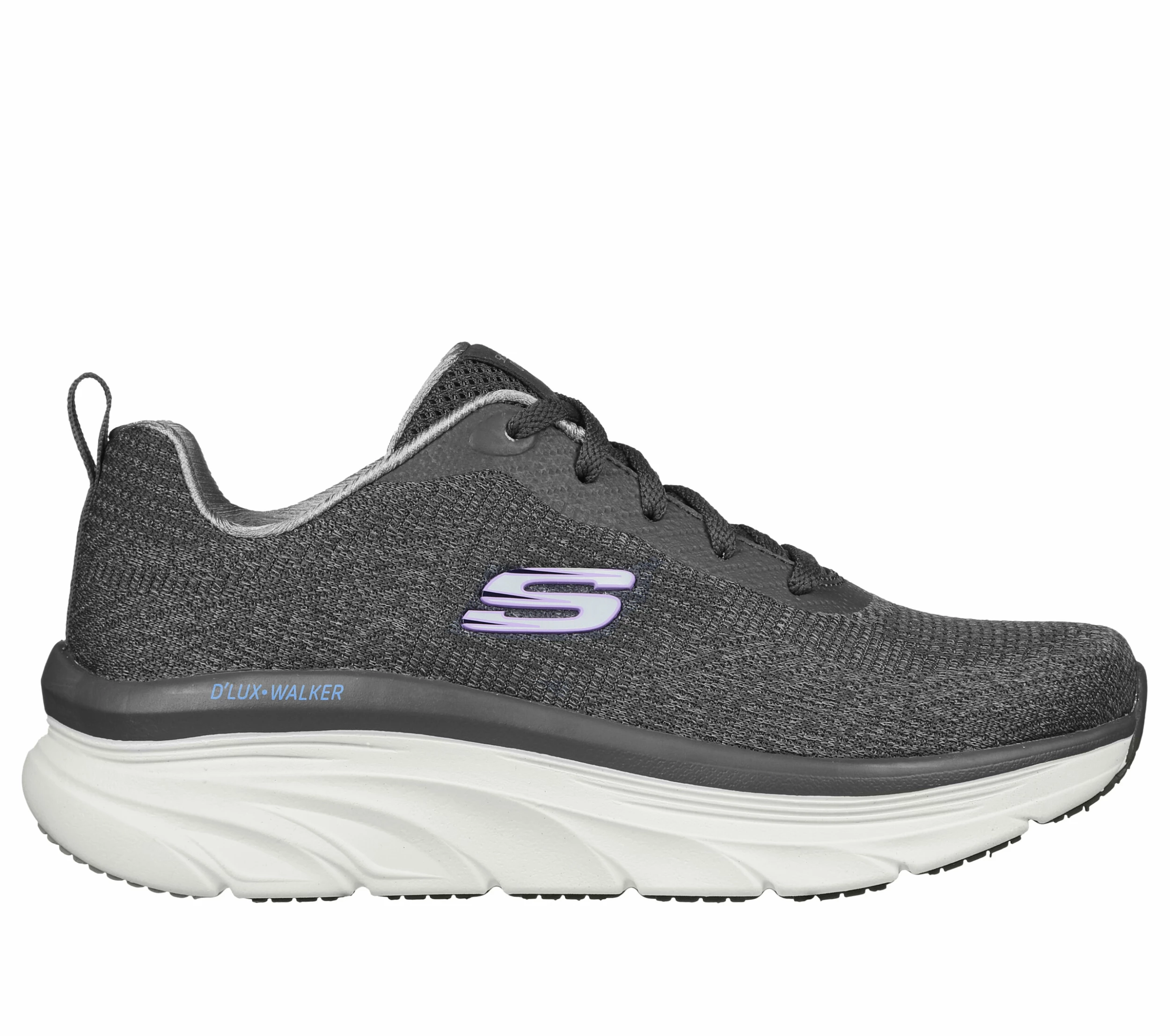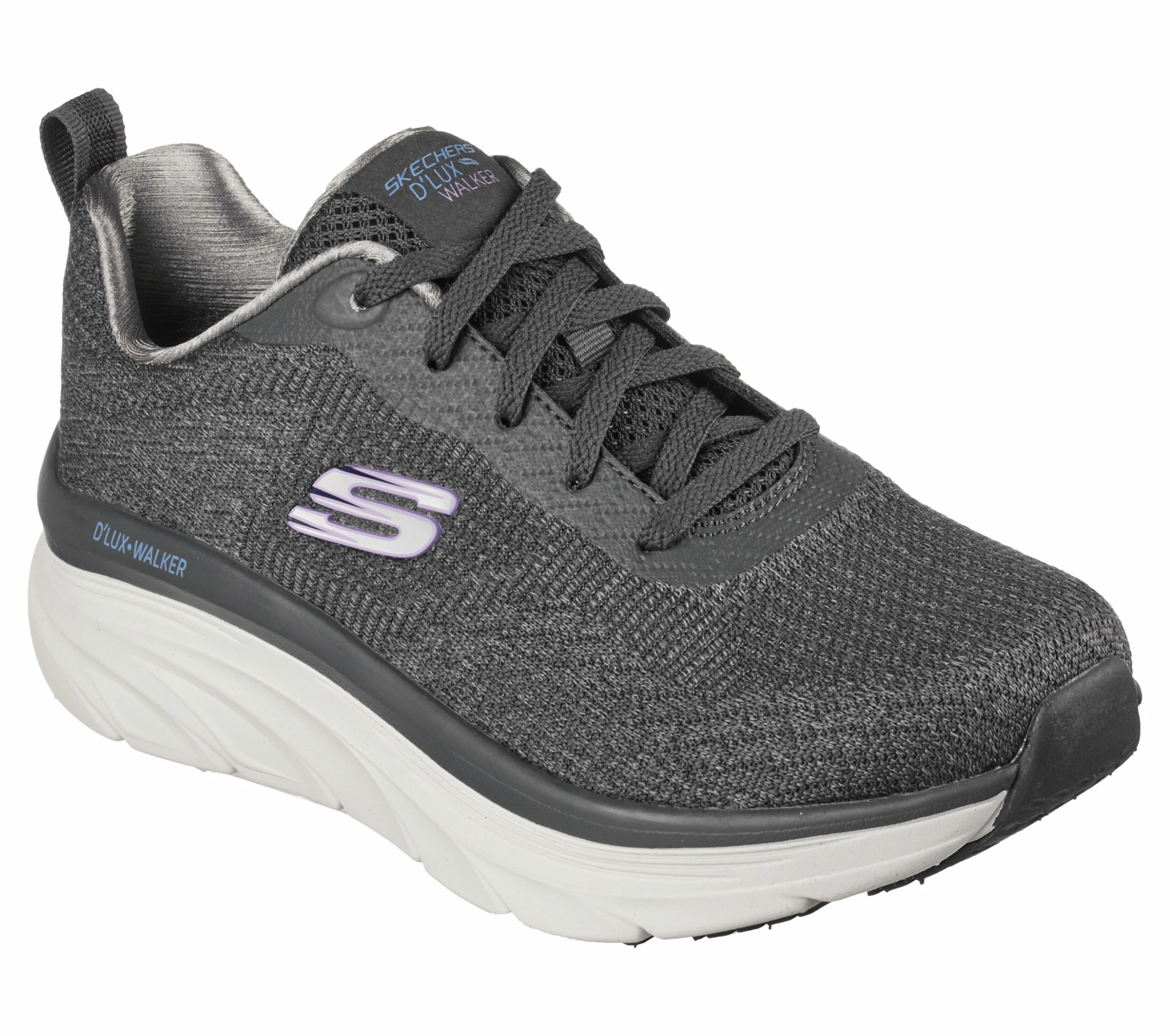 SKECHERS GO® Step up your walks with a boost of well-cushioned comfort wearing Skechers Relaxed Fit®: D’Lux Walker – Daily Beauty. This lace-up features an engineered knit upper with a Skechers Air-Cooled Memory Foam® insole and a cushioned platform midsole.