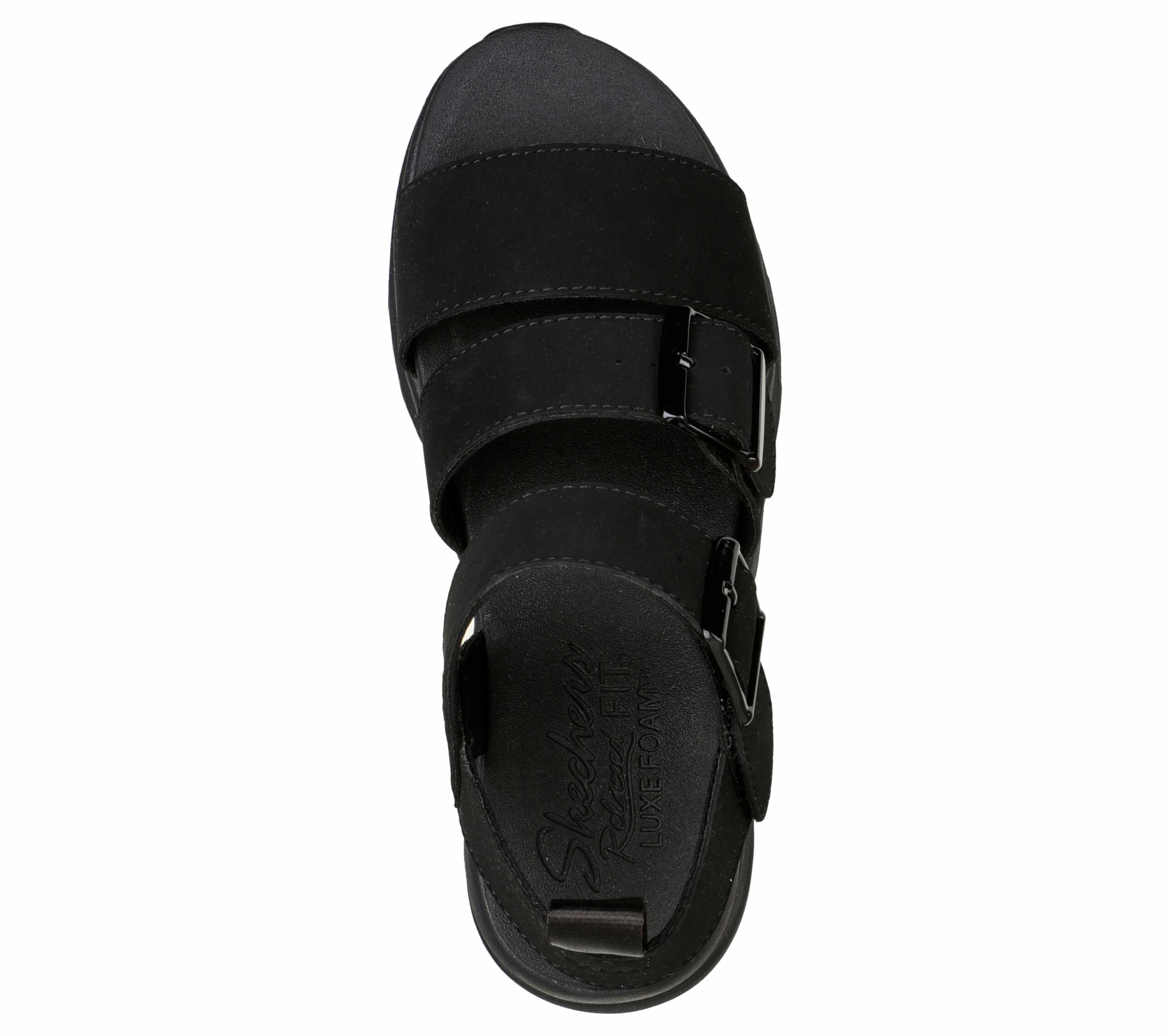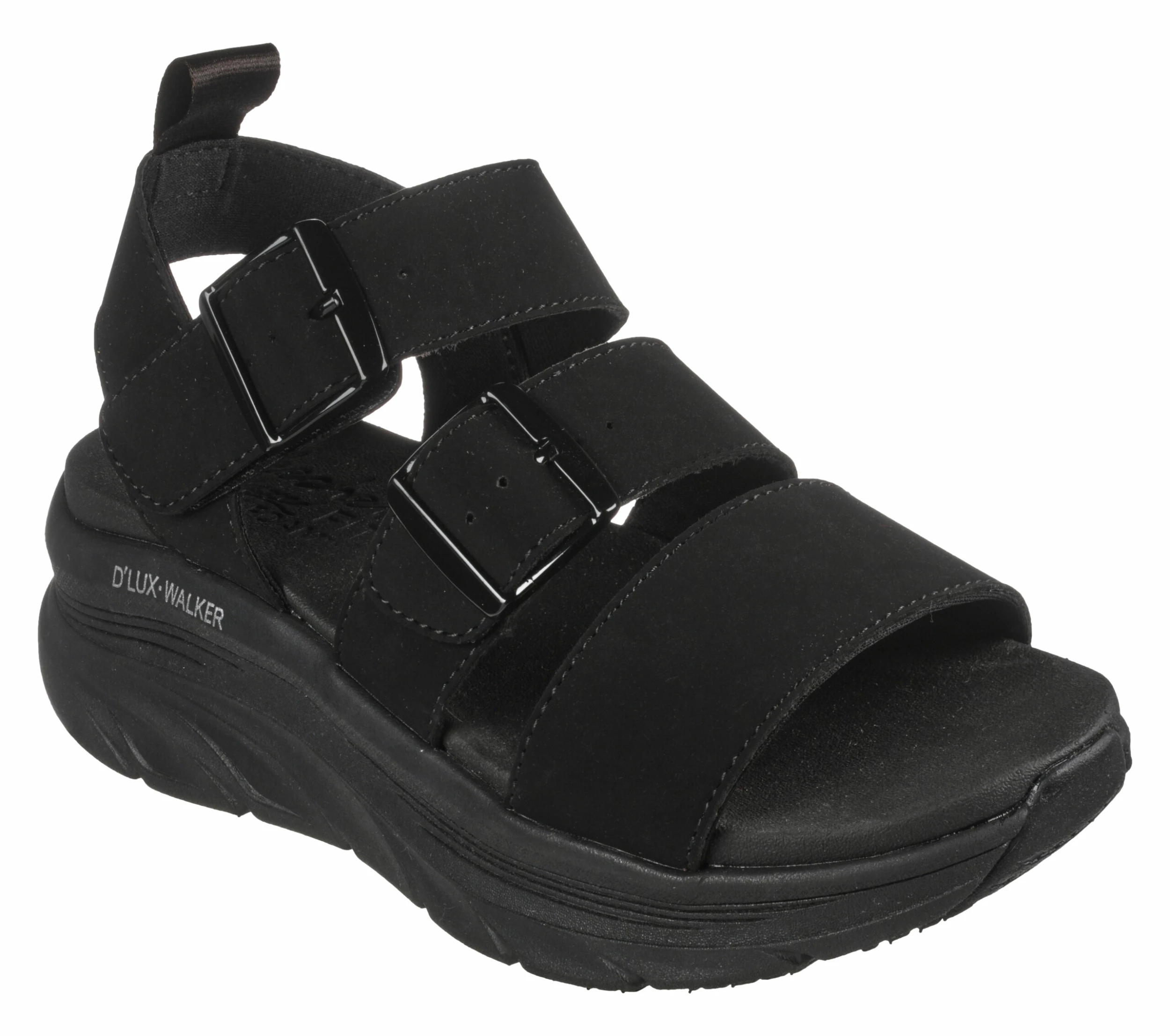 Enjoy long walks in supportive comfort wearing Skechers Relaxed FitĀ®: D’Lux Walker – Retro Cosmos. This strappy sandal features a synthetic upper with adjustable hook and loop straps, plus a cushioned Luxe FoamĀ® footbed.