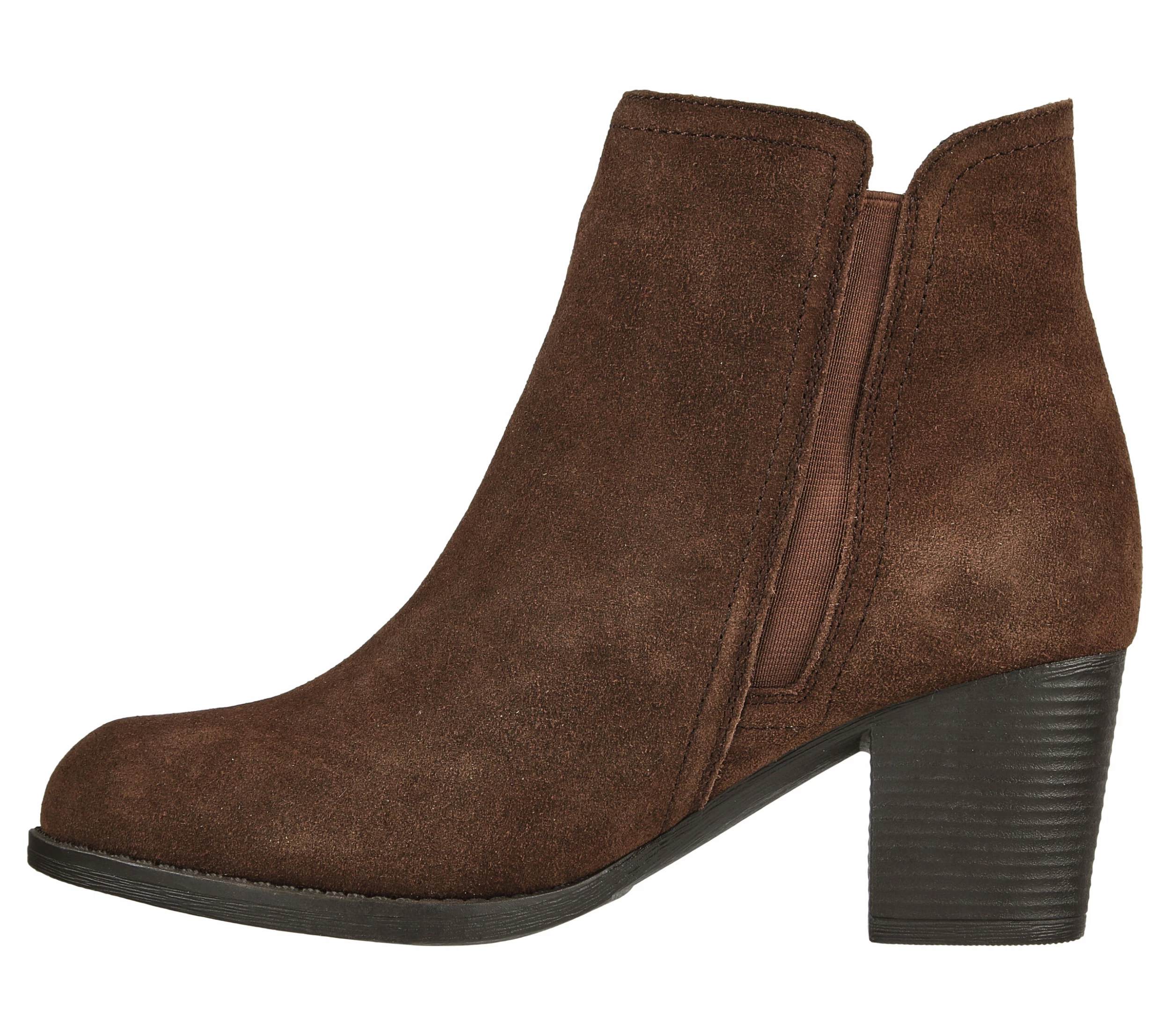 Add chic tailored style and feet-loving comfort to your look in Skechers Taxi – Weekend Plans. This bootie features a water-resistant suede upper with a Skechers Air-Cooled Memory Foam® comfort insole.