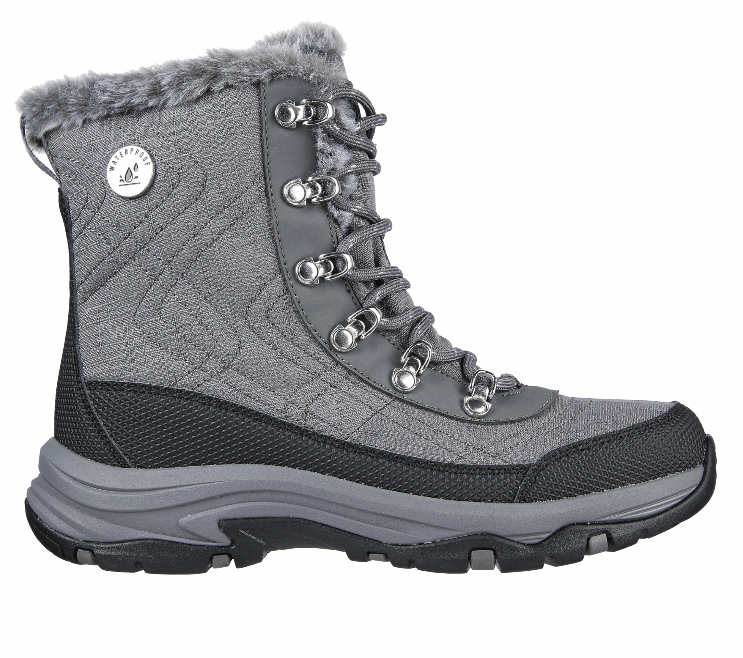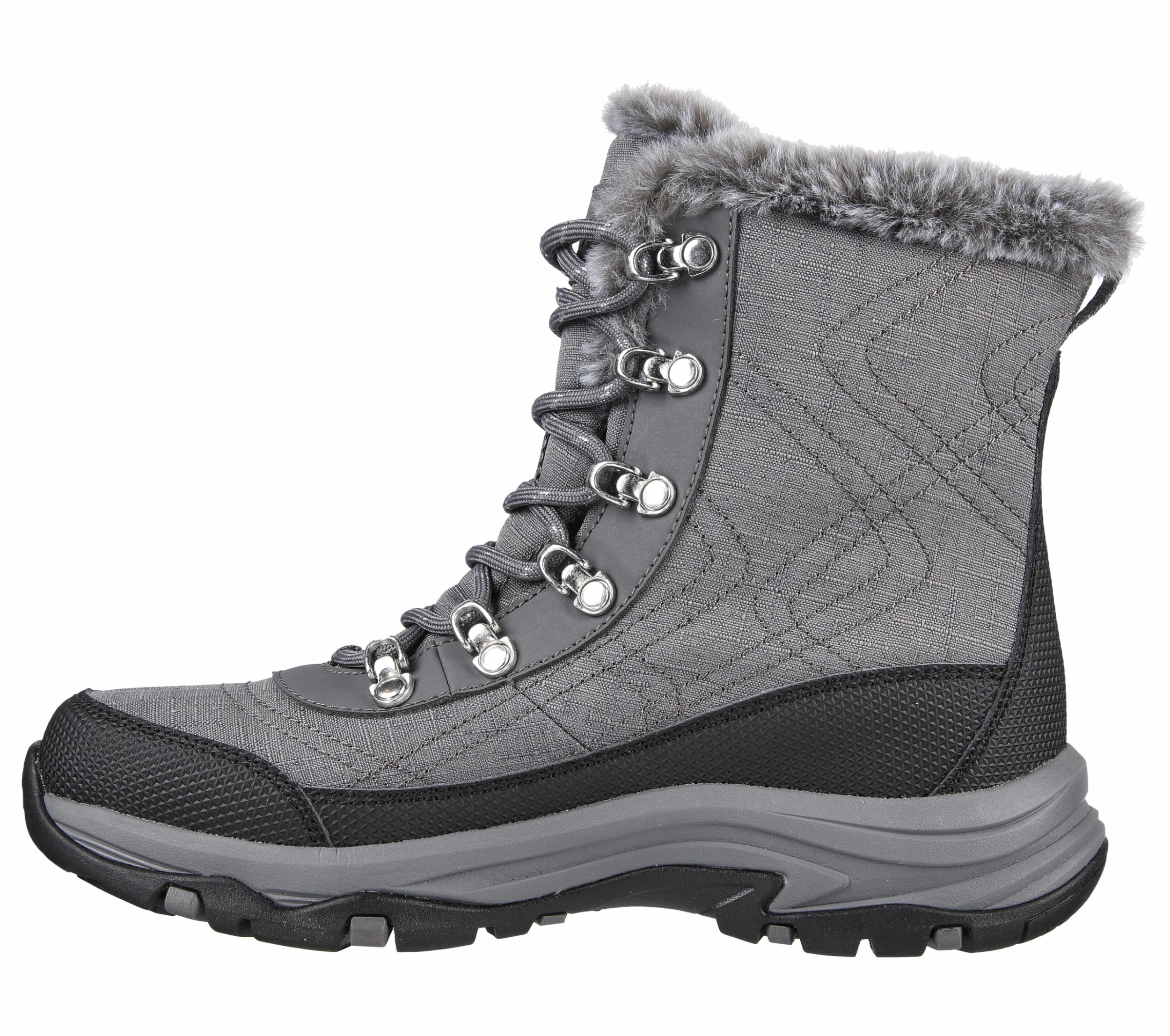 Keep it cozy this season in rugged comfort with Skechers Trego – Cold Blues. This lace-up hiking boot features a waterproof synthetic and mesh upper, faux-fur lined trim and a cushioned Skechers Air-Cooled Memory Foam® insole.