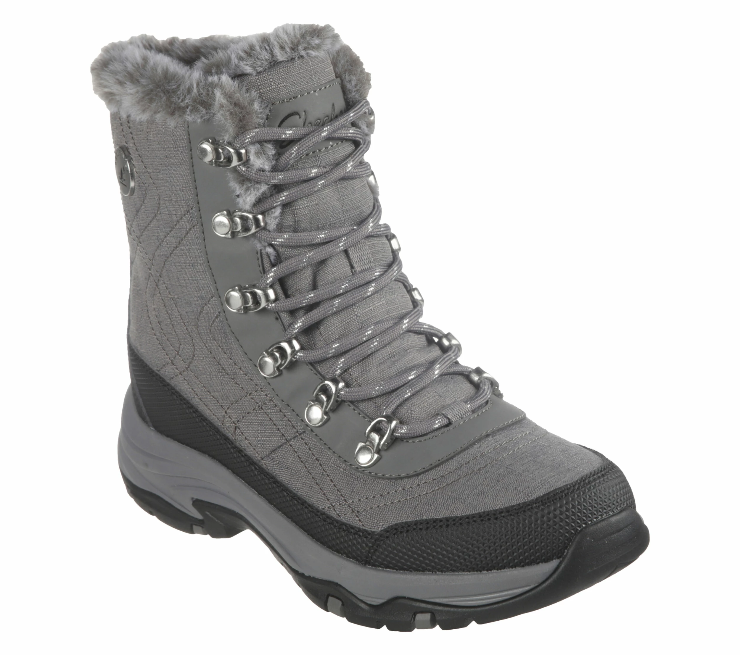 - Synthetic and mesh upper with a faux-fur lined trim