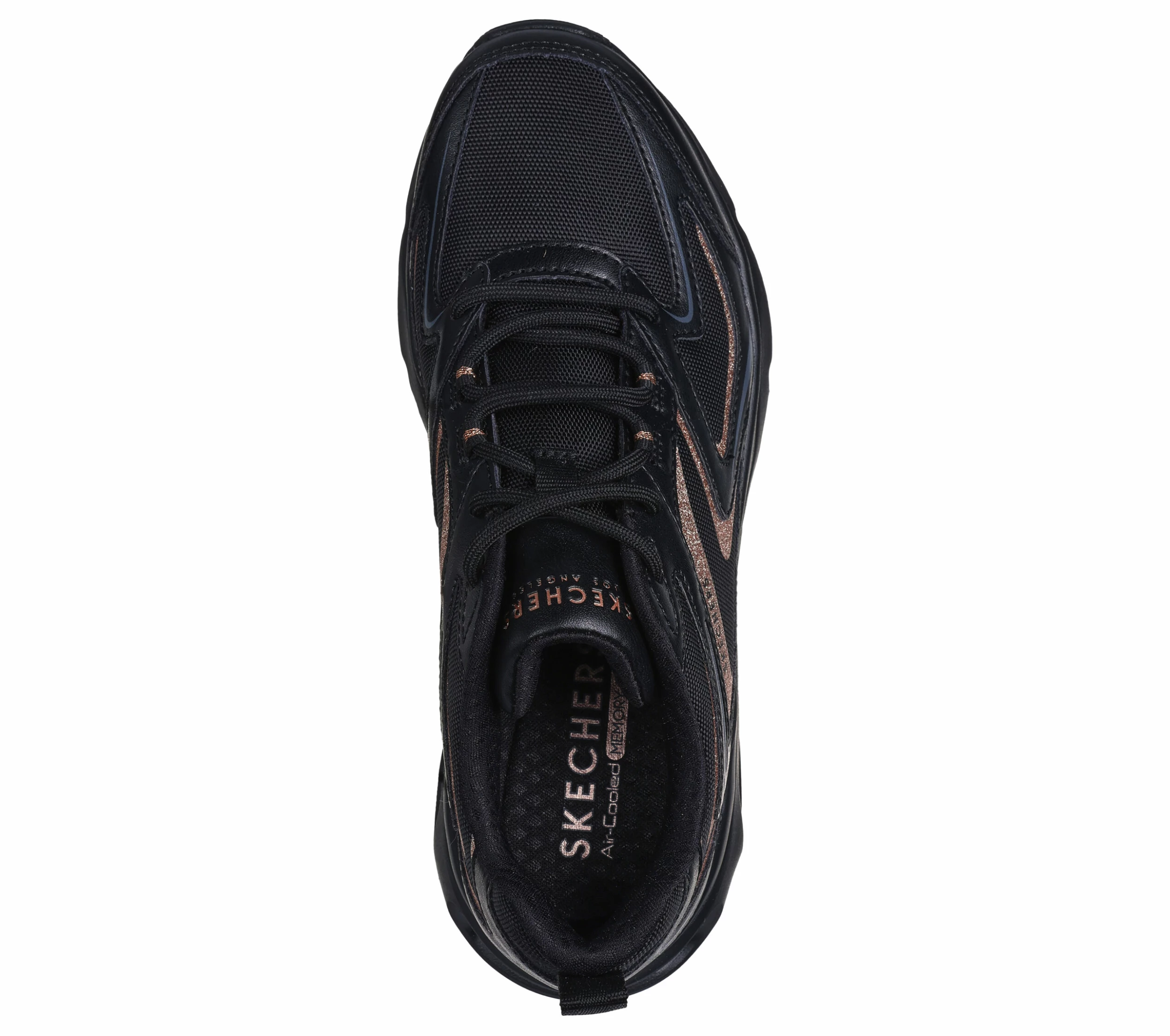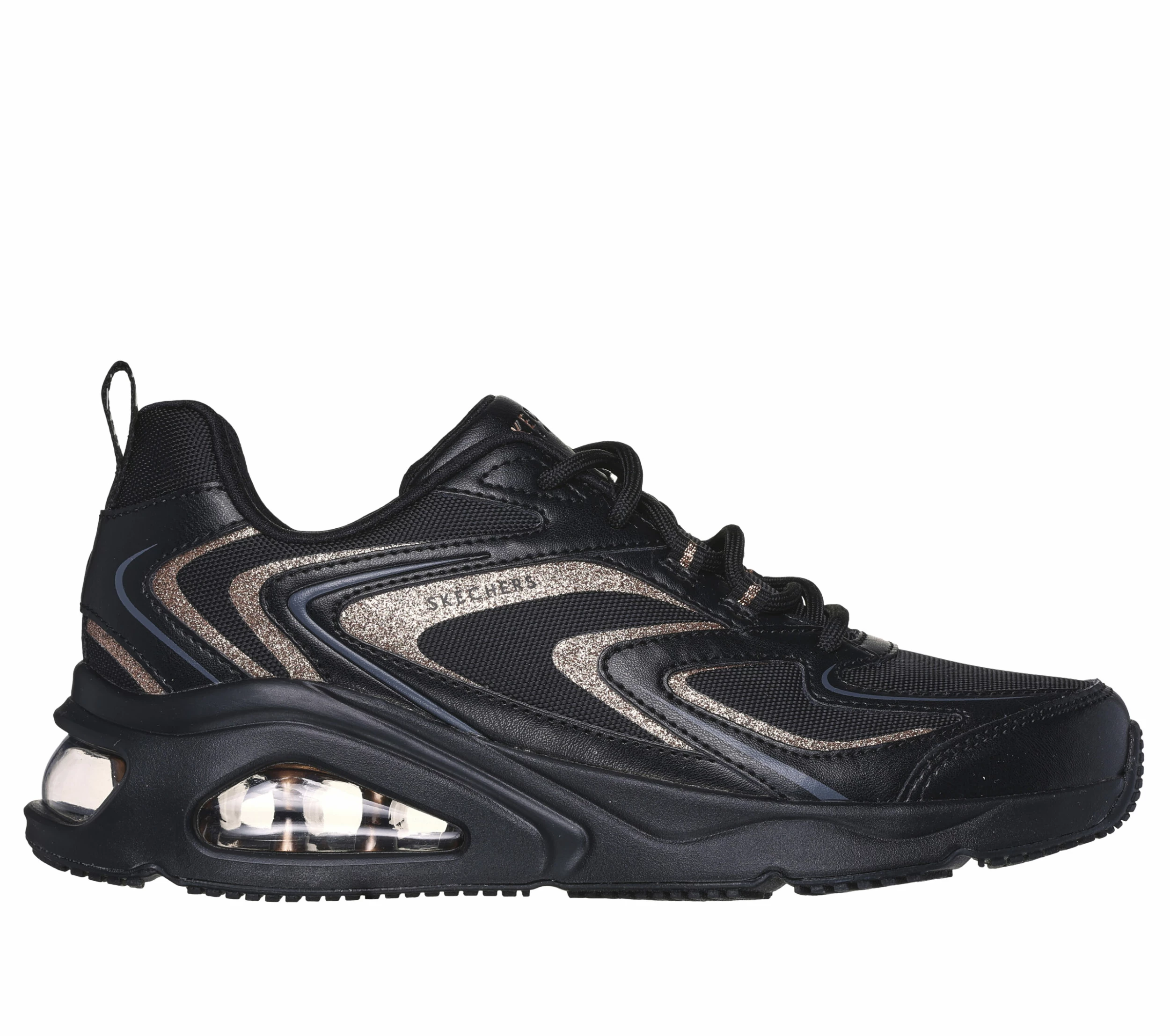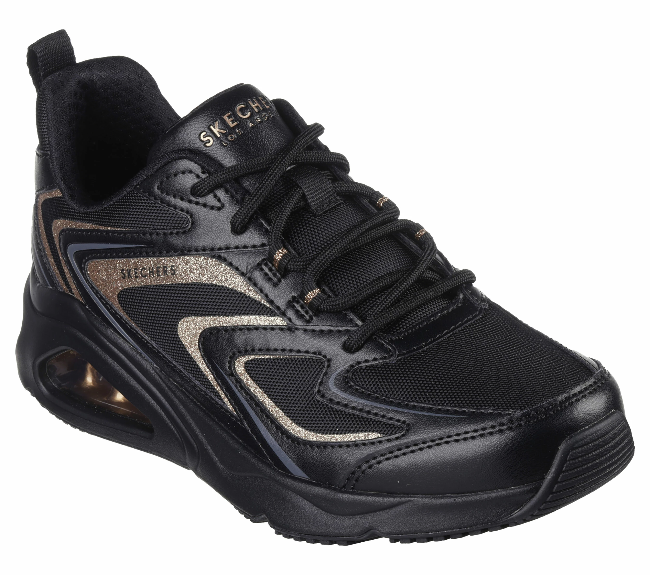 Take your style to the next level with a touch of glam wearing Skechers StreetĀ Tres-Air Uno – Shimm-Airy. This sporty fashion lace-up features a mesh upper with synthetic duraleather overlays, glittery hotmelt details, a visible Skech-AirĀ® airbag midsole, and a Skechers Air-Cooled Memory FoamĀ® insole.