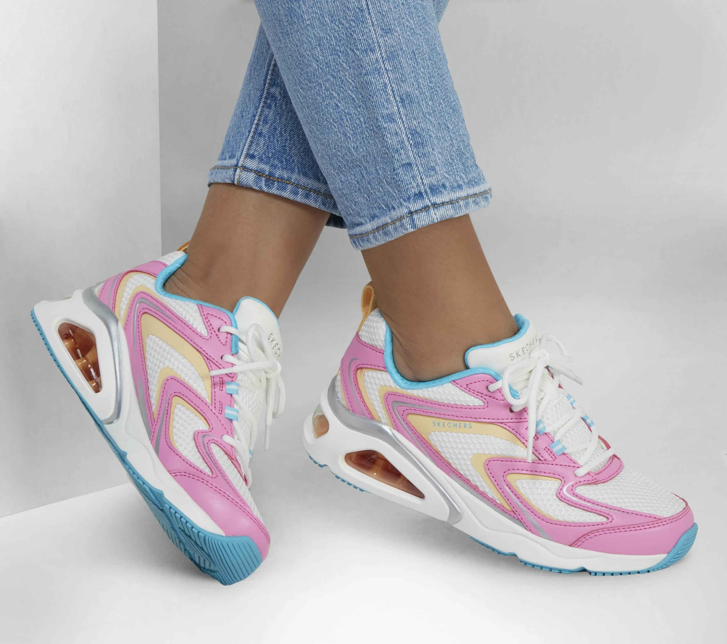 Show out in flashes of colorful fashion and comfort wearing Skechers StreetĀ Tres-Air uno – Extraordin-Airy. This sporty fashion lace-up features a mesh and duraleather upper with color pop overlays, a visible Skech-AirĀ® midsole plus an Air-Cooled Memory FoamĀ® insole.