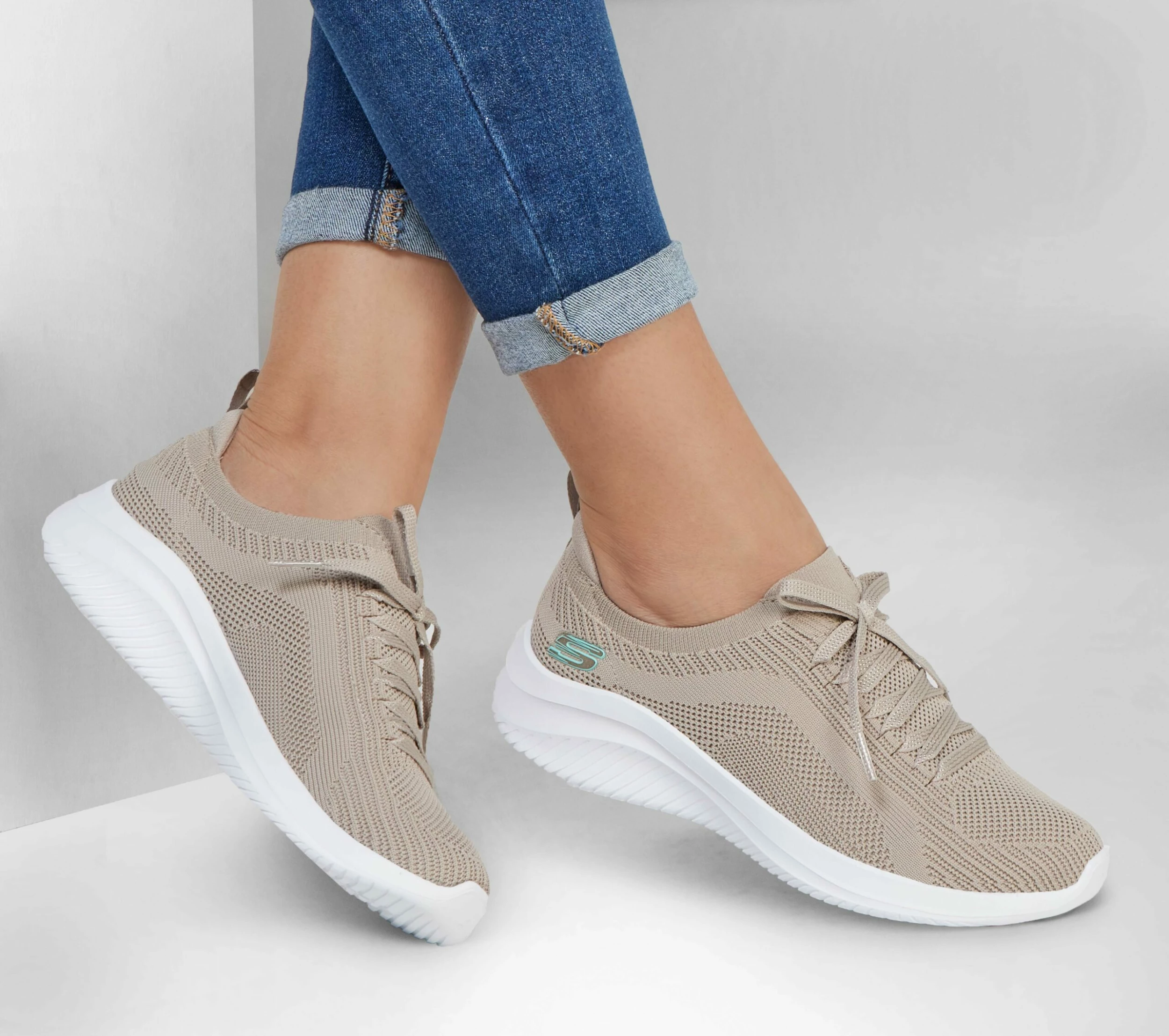 Effortless easy-wearing comfort and sporty style combine in Skechers Ultra Flex 3.0 – Big Plan. This Stretch Fit® slip-on features an engineered knit upper with decorative laces and cushioned Air-Cooled Memory Foam® insole.