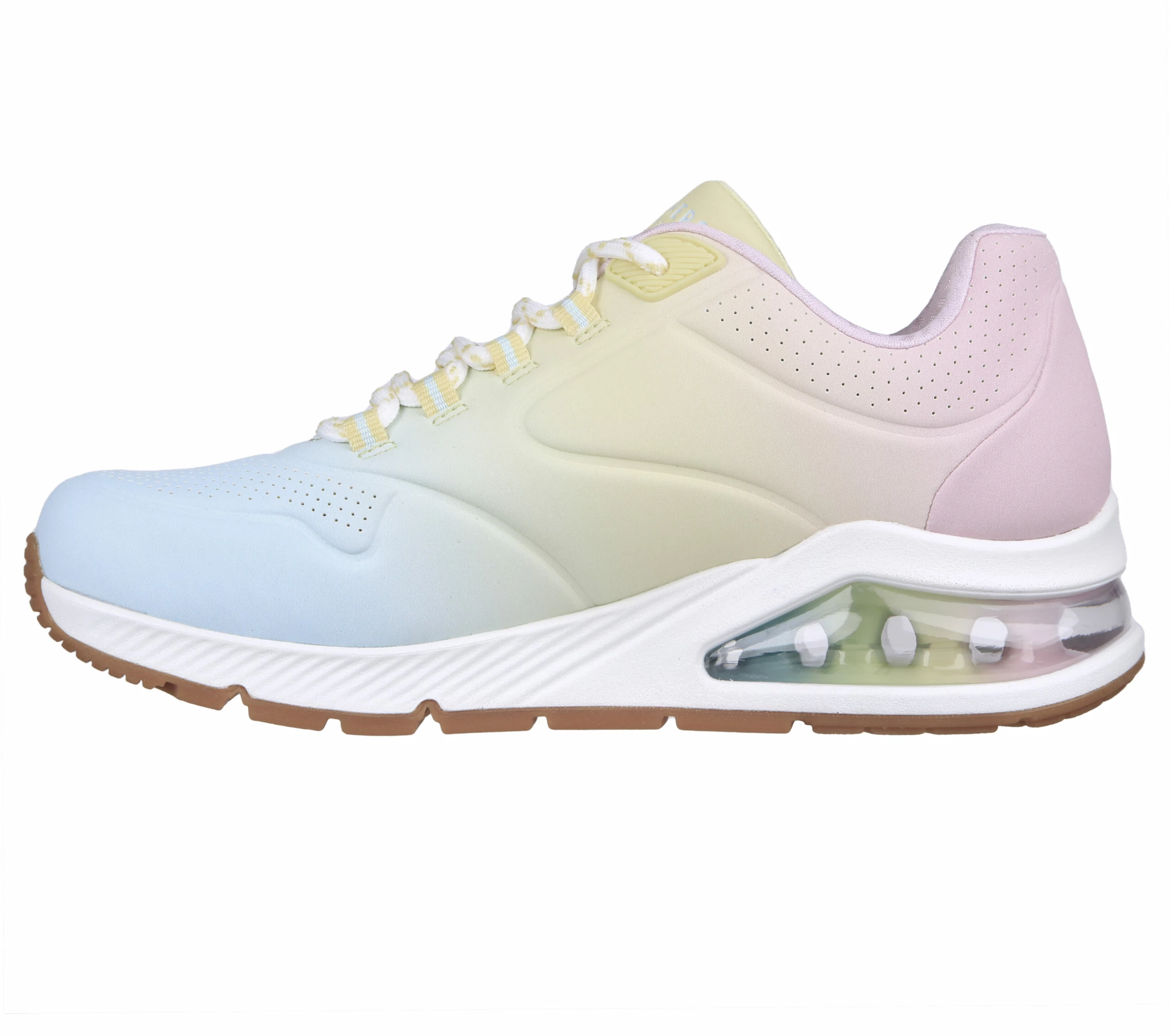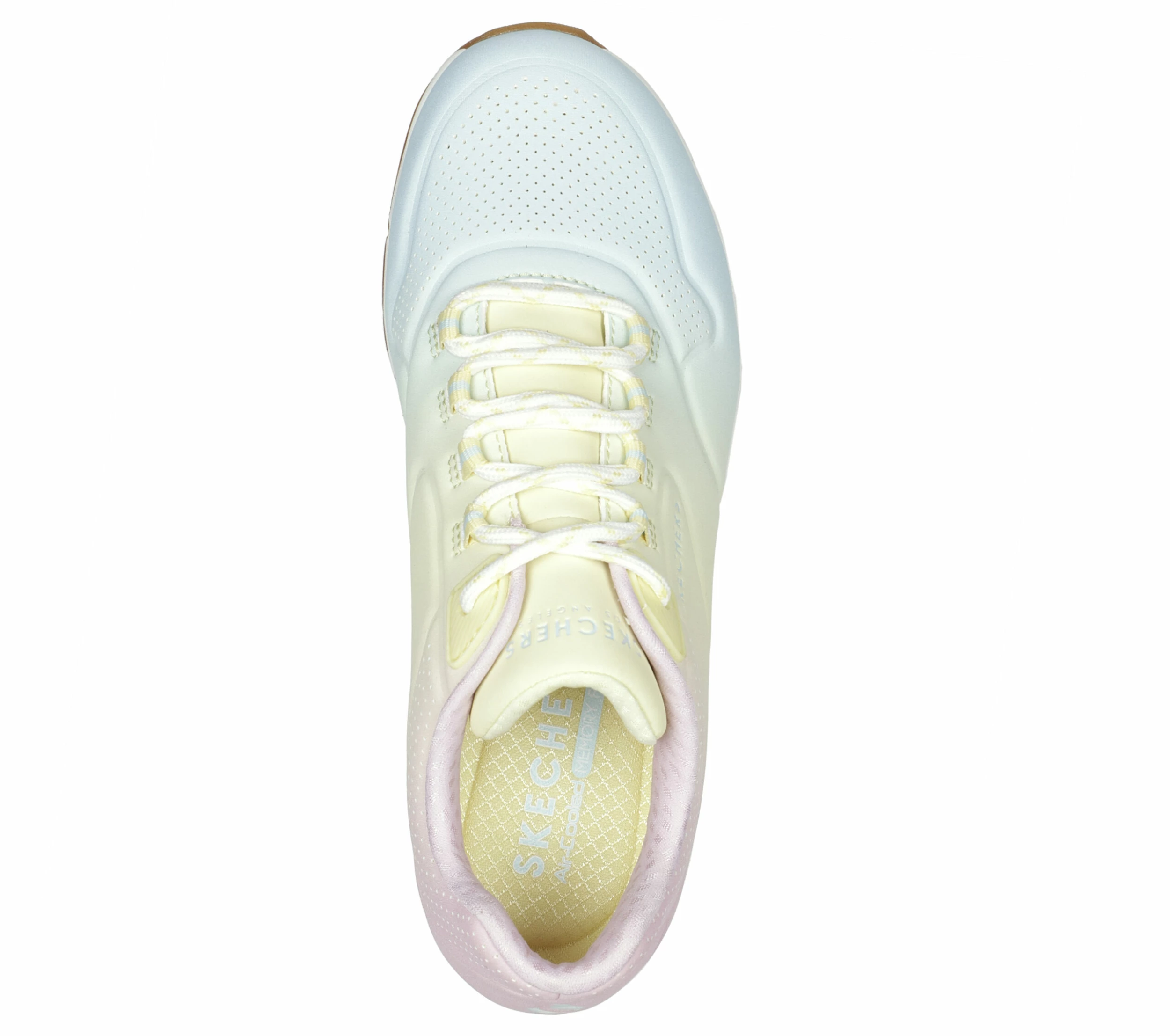 Stand out in cool hues and fresh style with Skechers StreetĀ Uno 2 – Ombre Away. This fashion lace-up features an ombre durabuck and woven fabric upper with a Skechers Air-Cooled Memory FoamĀ® insole and a visible Skech-AirĀ® air-cushioned midsole.