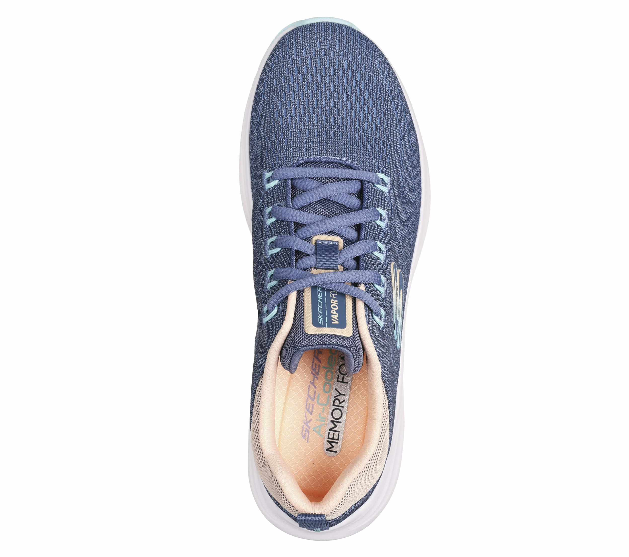 Experience total comfort and sleek style with the super lightweight Skechers Vapor Foam. This sporty lace-up features an engineered jacquard fabric upper with a cushioned Skechers Air-Cooled Memory Foam® insole, plus a Vapor Foam midsole.