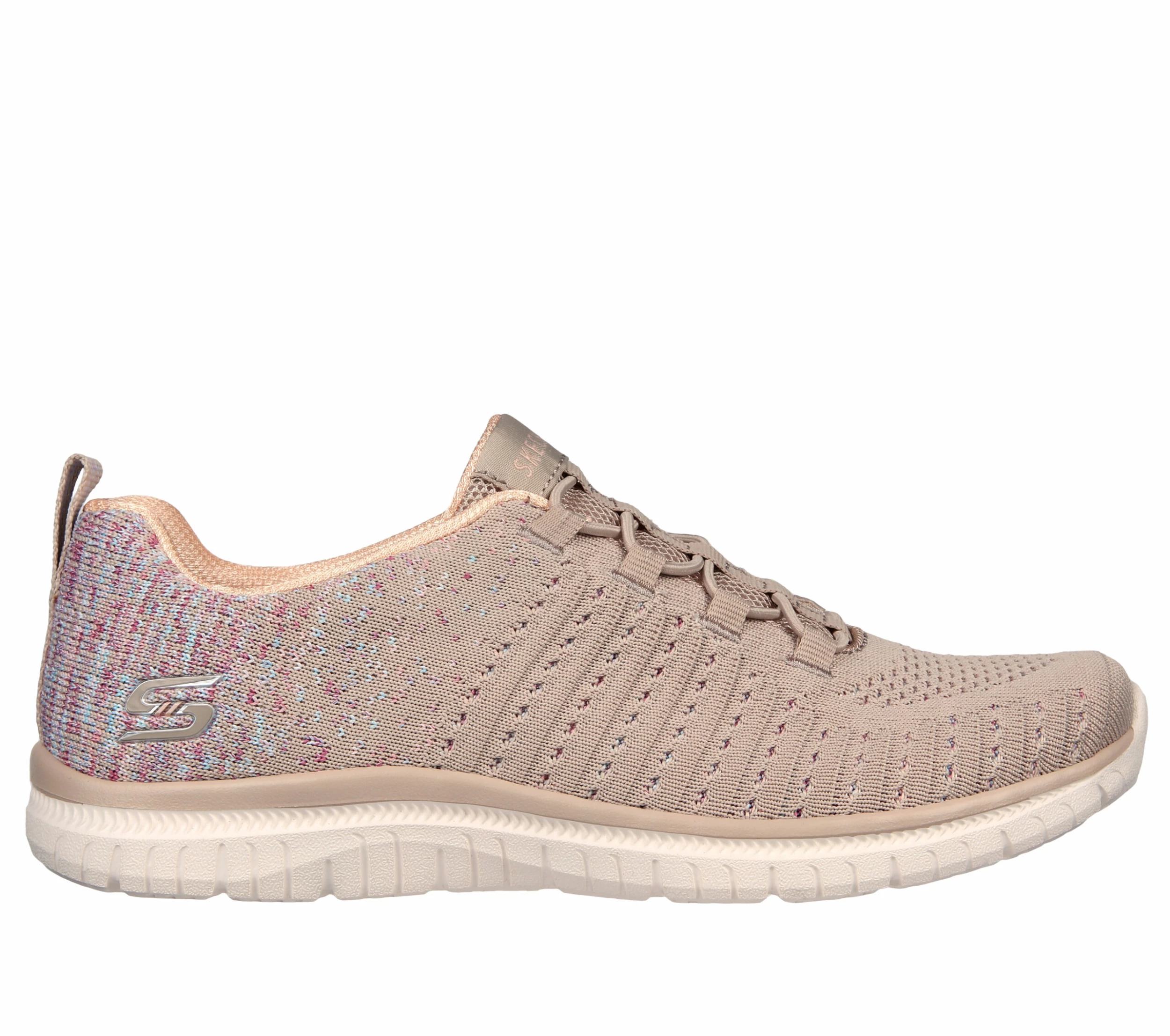 Enjoy your walks in easy-wearing comfort with Skechers Virtue. This sporty design features an engineered knit upper with trickle-down color detailing at the heel, a stretch-lace front and a cushioned Skecher Memory Foam insole.